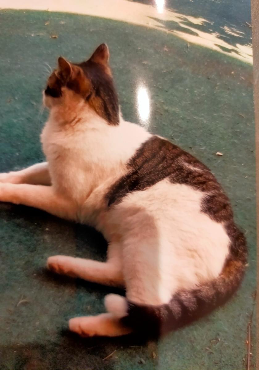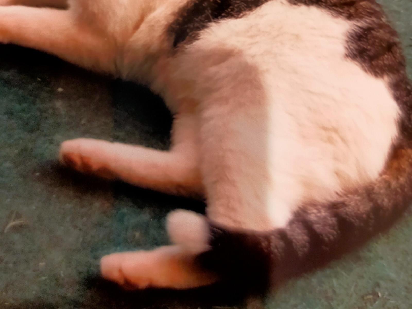 白多めで中型ほどです。尻尾の先だけが白いのが特徴です。