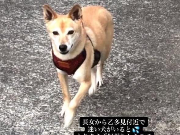 赤茶色のハーネスを着けた茶色い犬を探しています