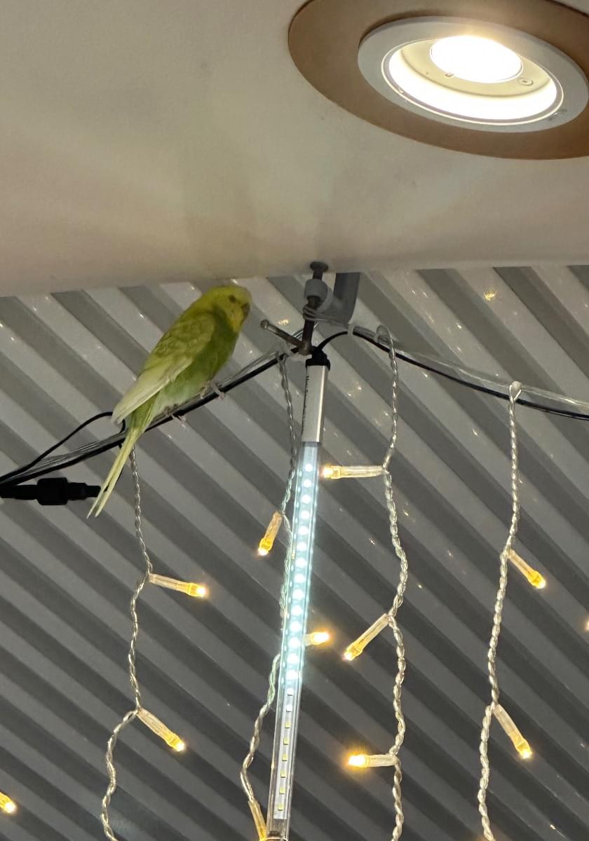 神奈川県横浜市大和市のイオンイトーヨーカドーの連絡通路でイルミネーションの電飾の上で黄色いインコを見かけました、