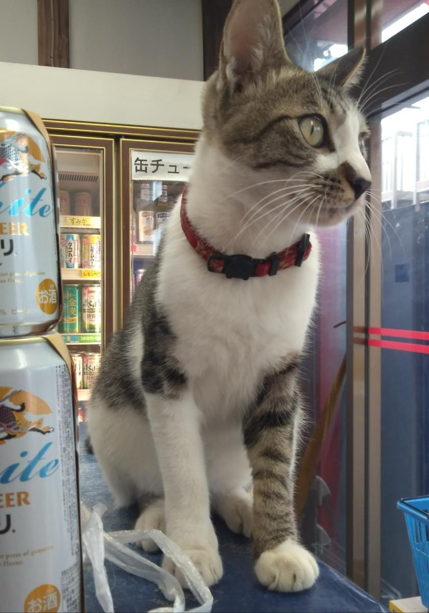 ネズミを狩るのが上手く人懐っこいので近所でも可愛がられていました。酒屋の看板猫です。猫を飼っているお宅へ遊びに行きます。他の猫と不用意に距離を詰めるのでよくケンカになります。大きな音、声が苦手。よく鳴いて主張する。失踪時は黒の首輪をしていました(外れているかも)。
