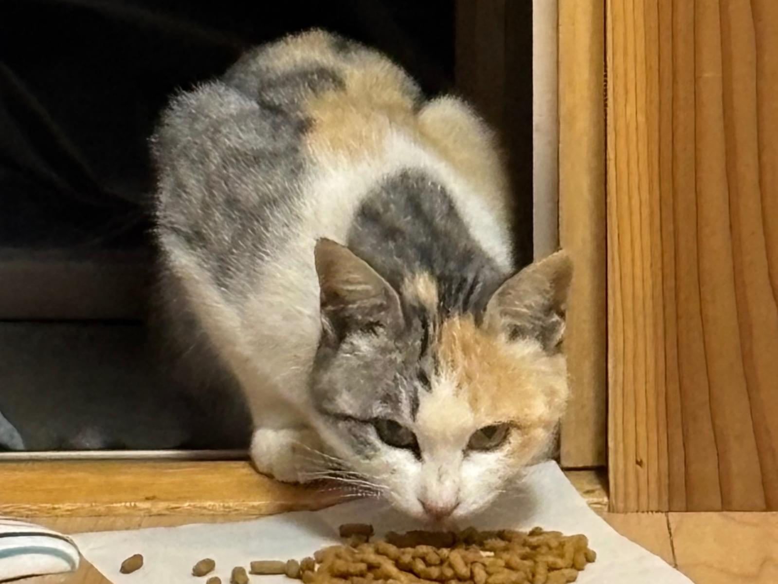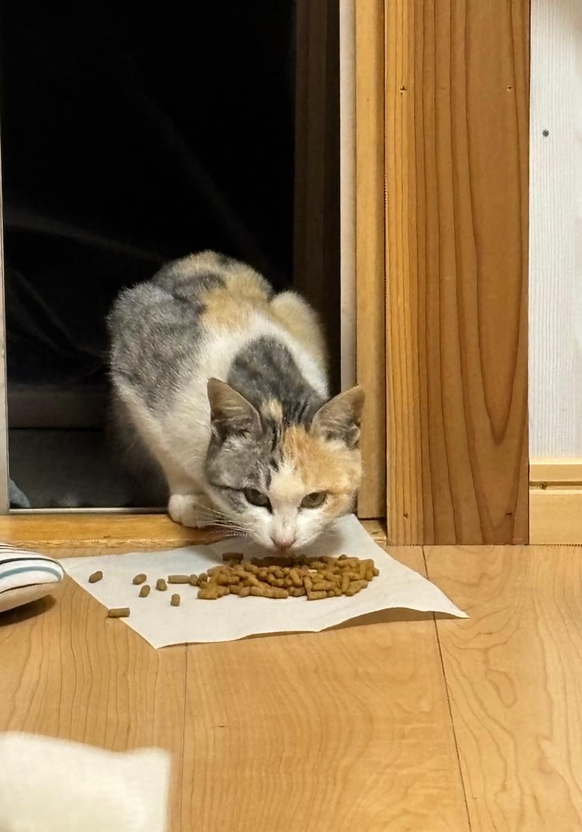 自宅付近で時々現れ、餌を出しておくと食べにきます。警戒心強めで触らせたりはしてくれず、近づくとすぐ逃げてしまいます。