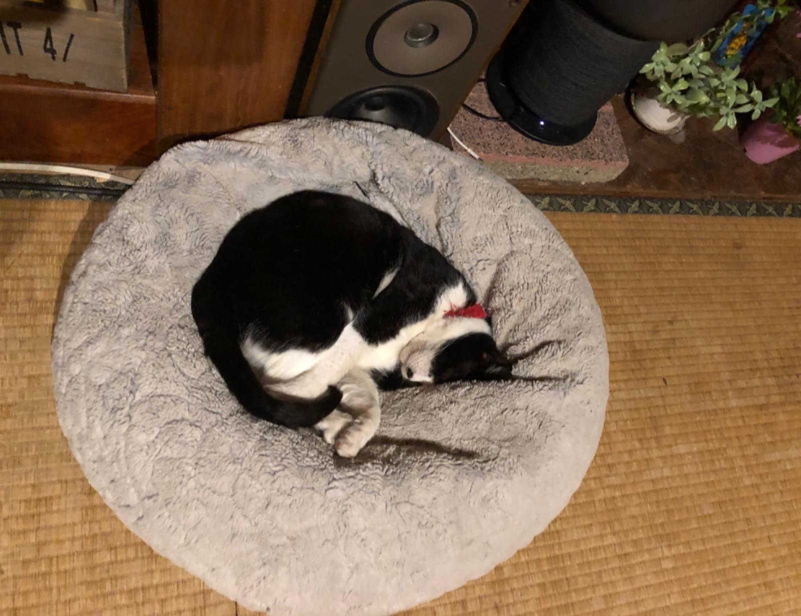 中位の大きさですおとなしくあまり泣くことができません ほつれ気味の赤い首輪をしています