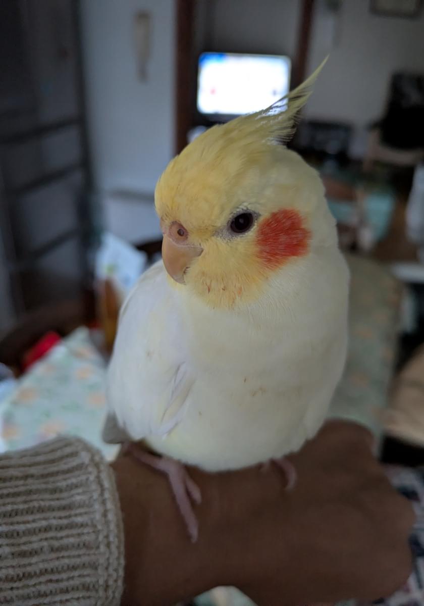 黄色いオカメインコを探しています。ほっぺはオレンジ色です。極寒の日の朝に飛んで行ってしまいました。
