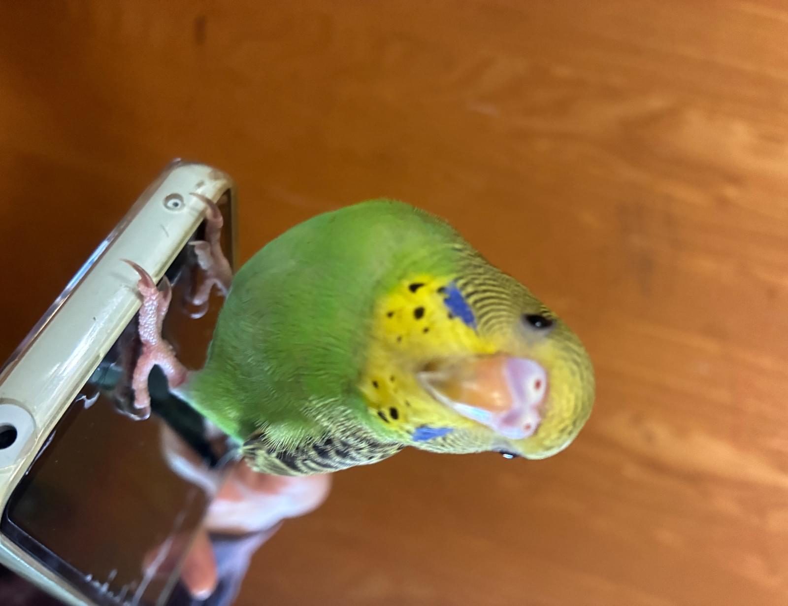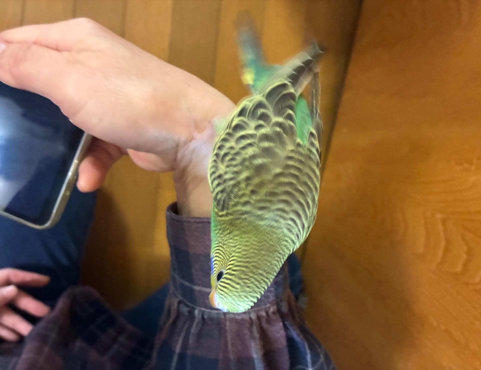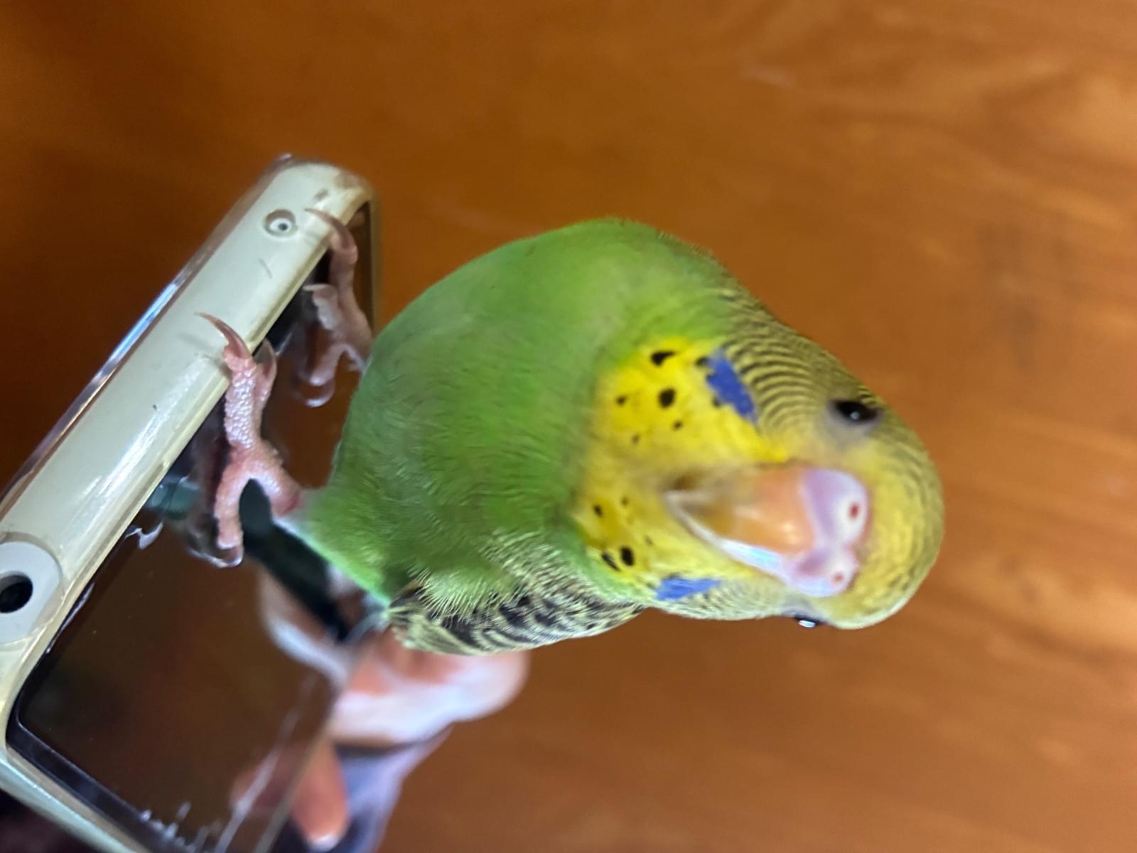 スマホを向けても怖がりません。頭の上や肩によく乗ってきます。