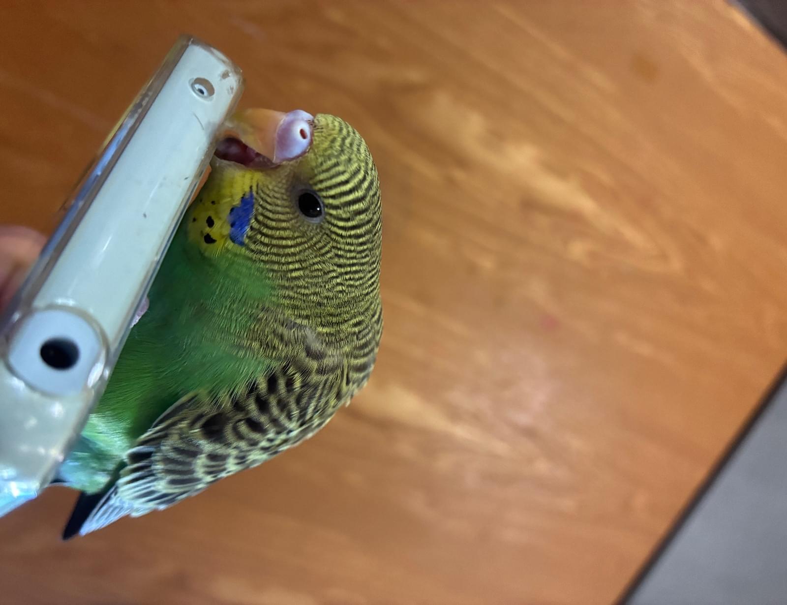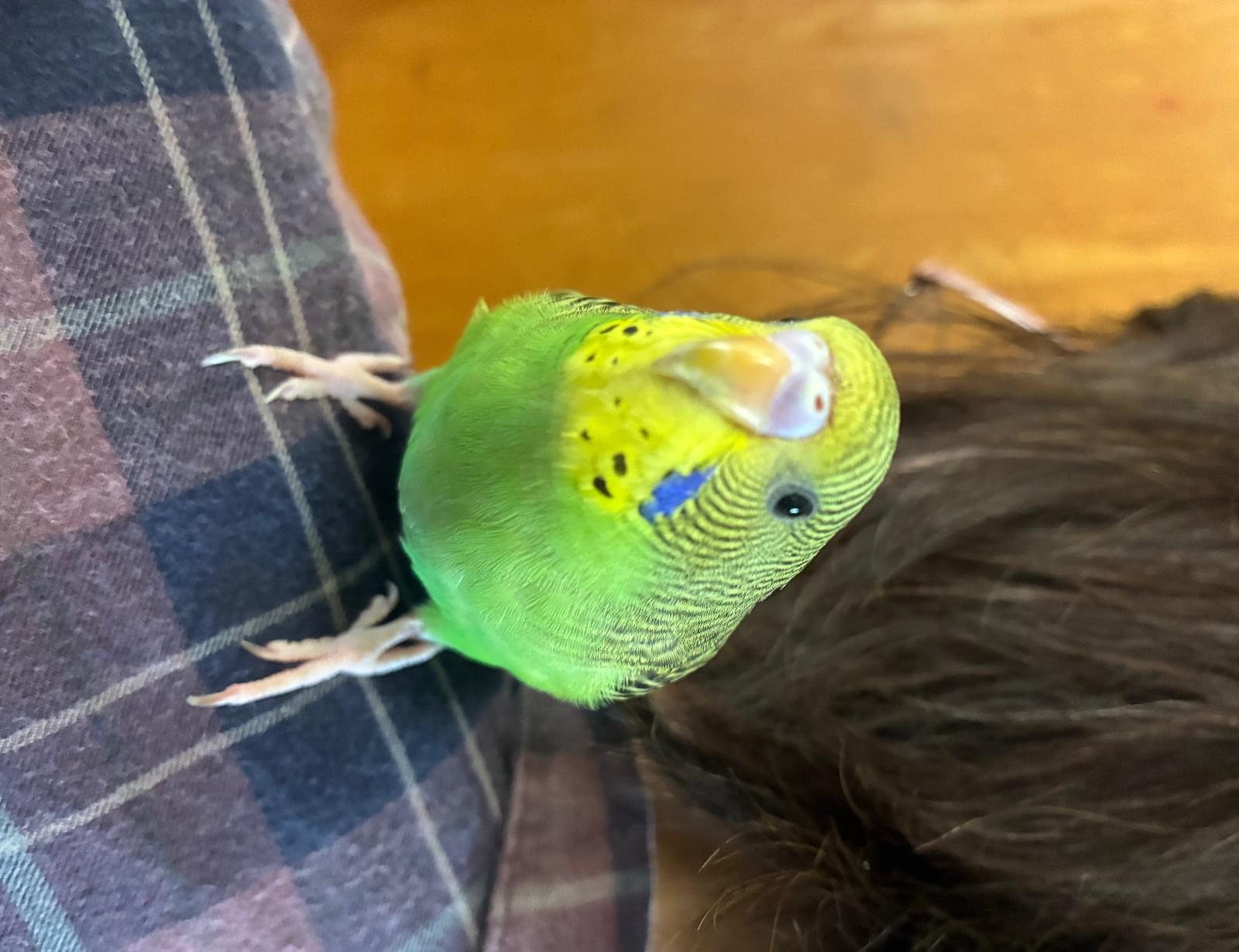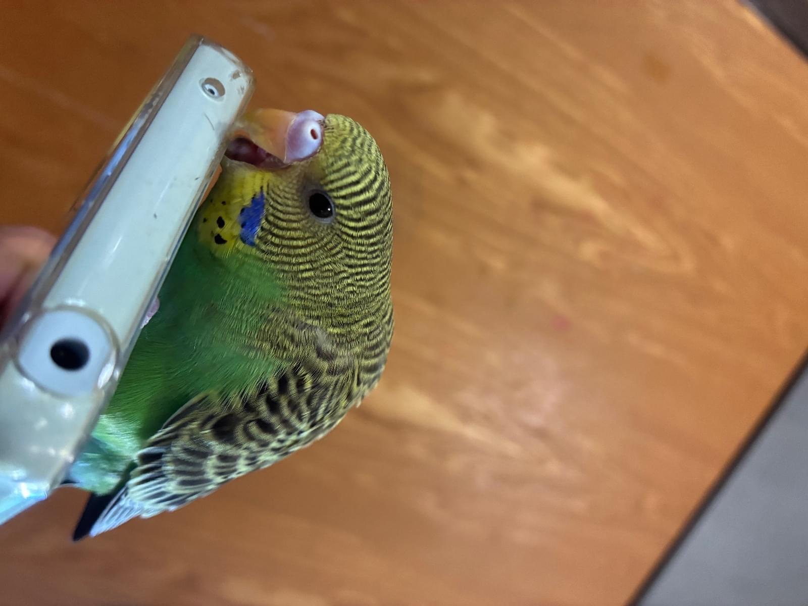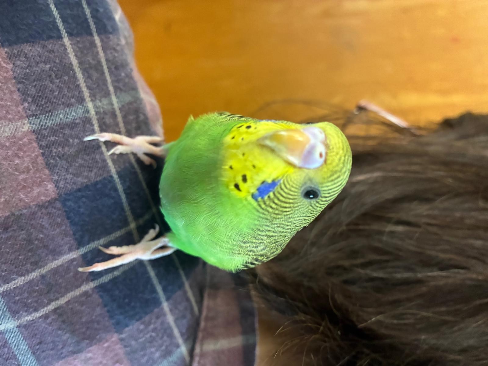 スマホを向けても怖がりません。頭の上や肩によく乗ってきます。