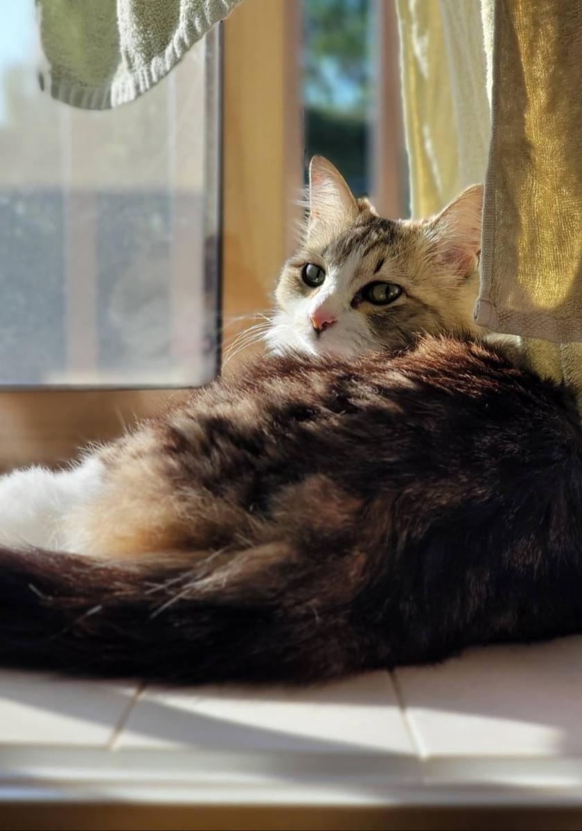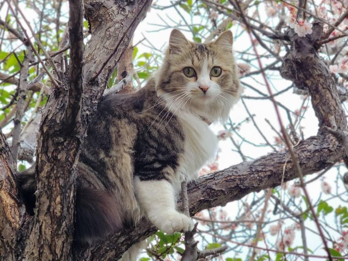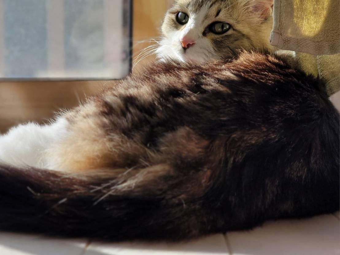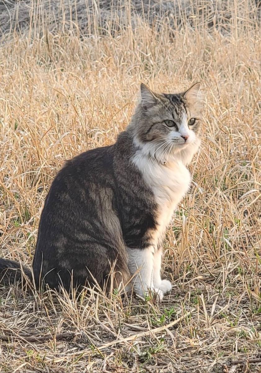 キジトラ足と腹白毛、 長毛、尻尾フサフサ長い