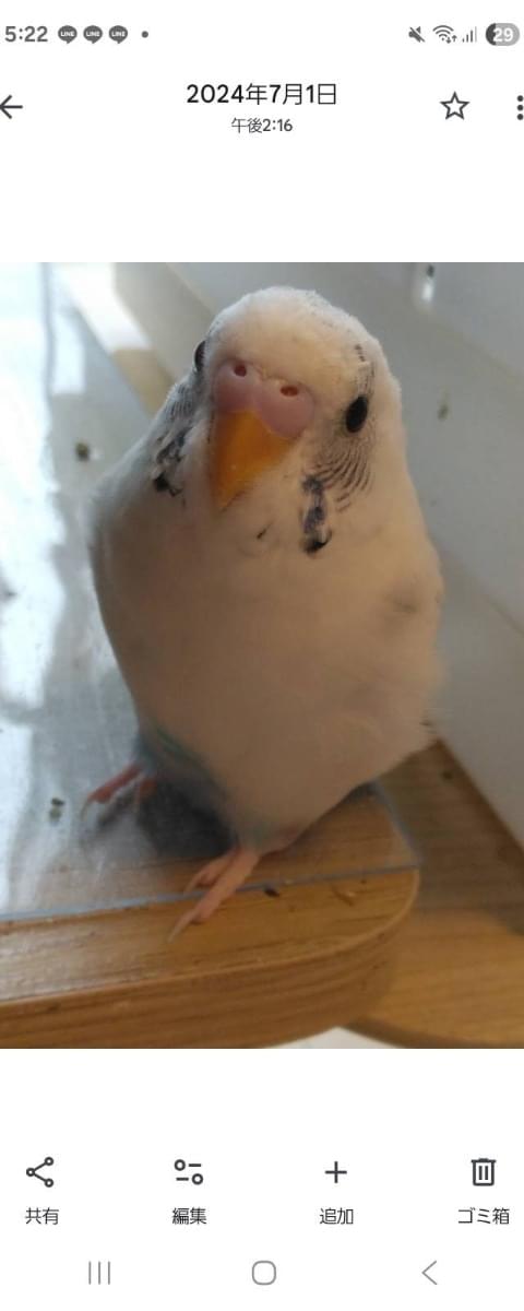 白に水色のセキセイインコです ドットのように黒も入っています