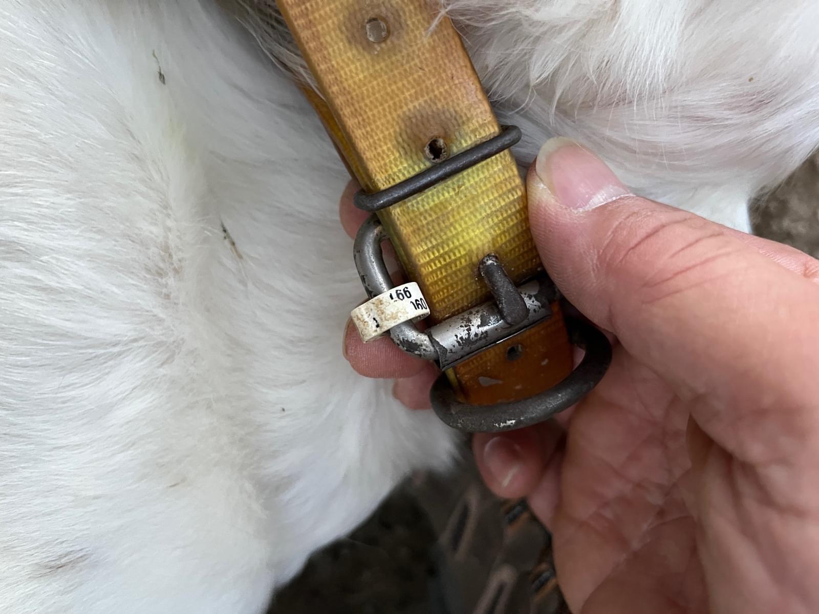 黄色い首輪とカウベルのような鈴。