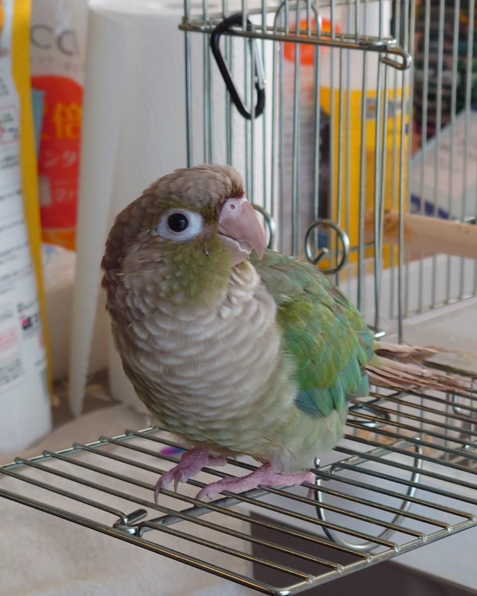 ホオミドリアカウロコインコです。