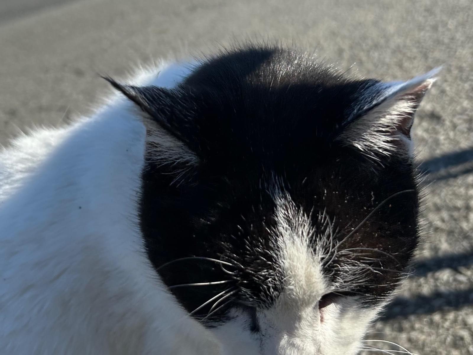 人懐こい、白地に黒い模様の猫