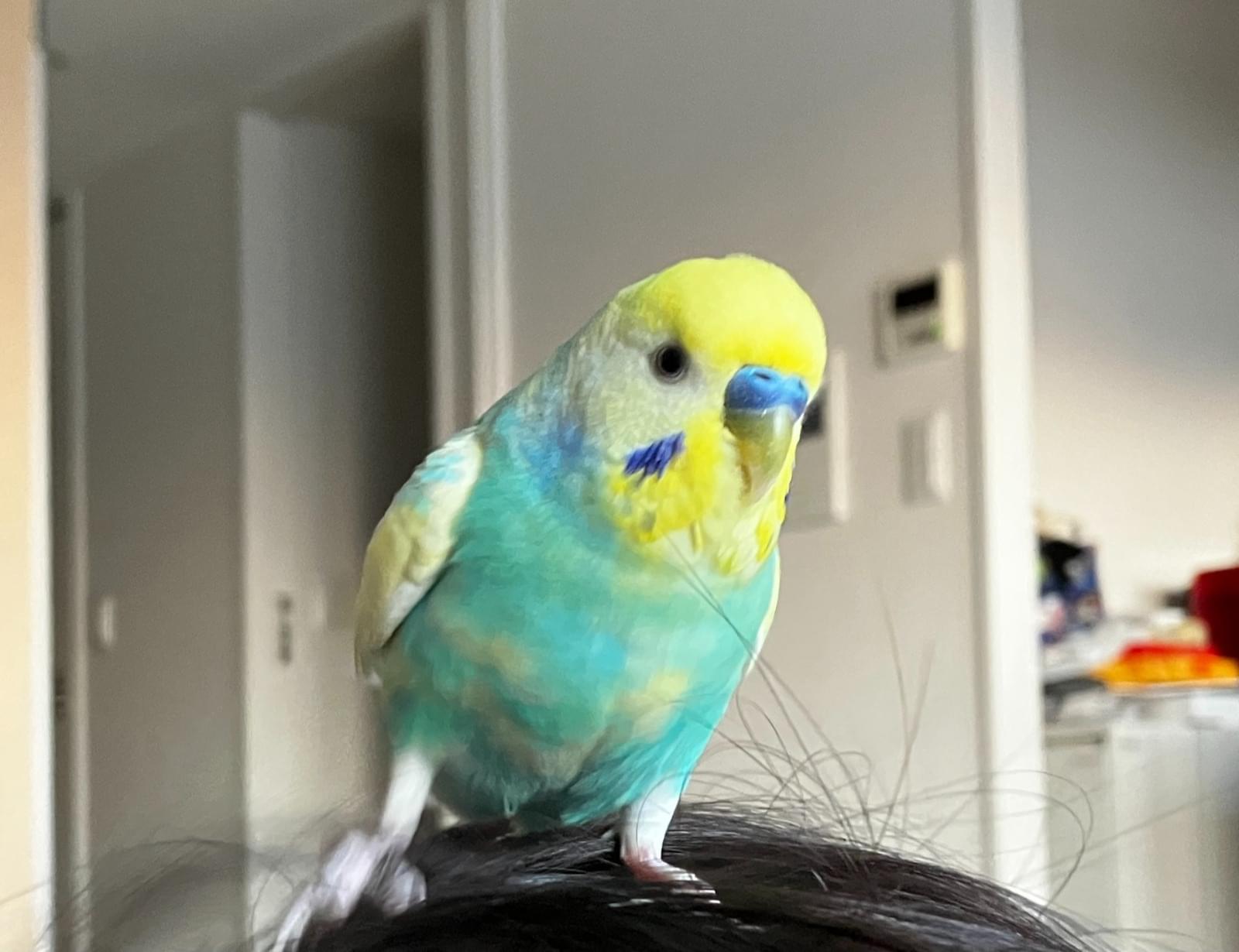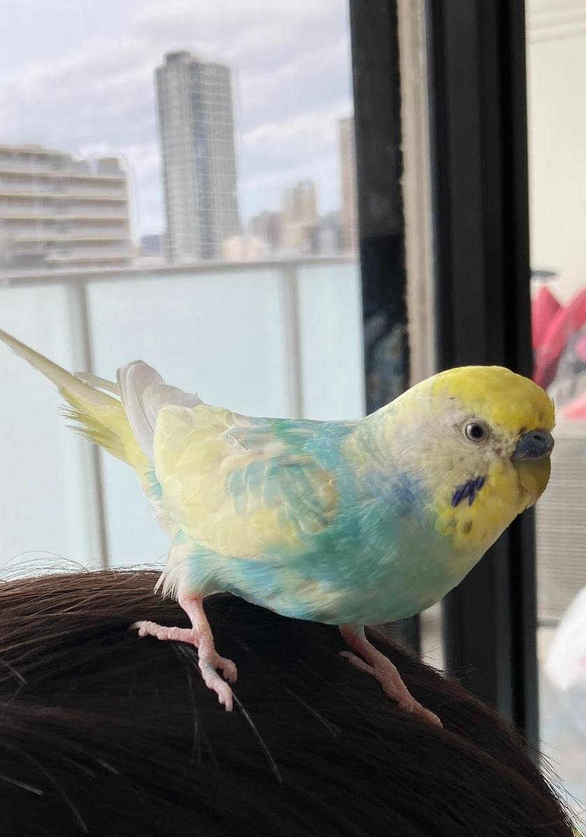 2021年9月3日に我が家のベランダへ迷い込んで来たインコで、年齢はわかりません。水色と黄色のレインボーカラーのオスです。2021年から飼っていましたが、2026年の1月4日に、窓が空いている隙にベランダから逃げていきました。