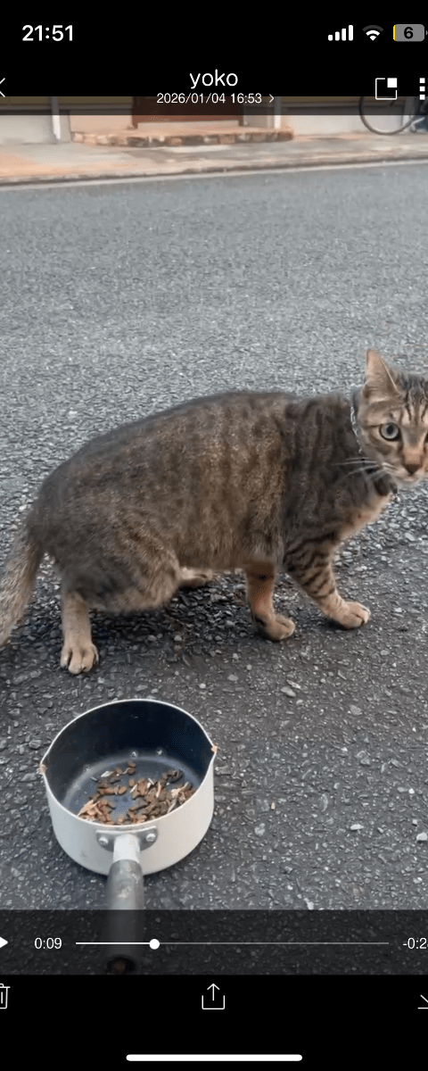飼い猫か迷い猫かわからないので保護せず見守る予定です