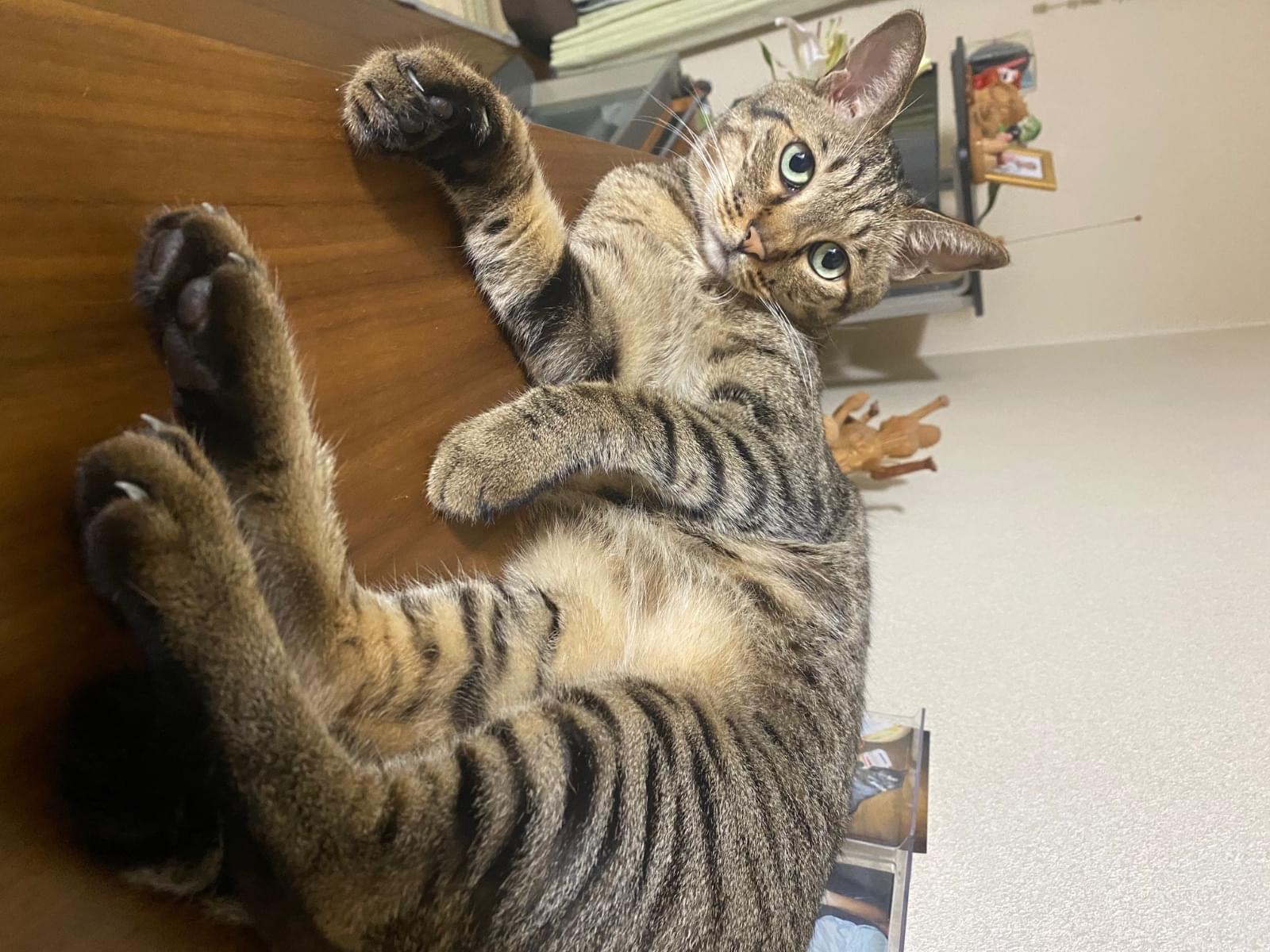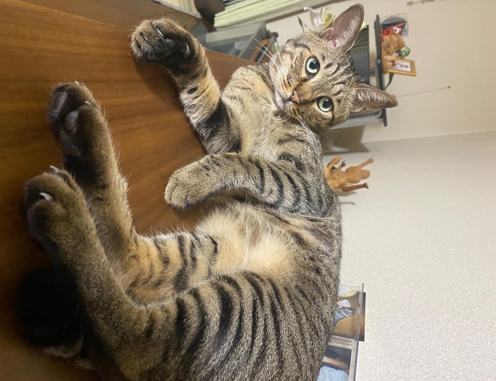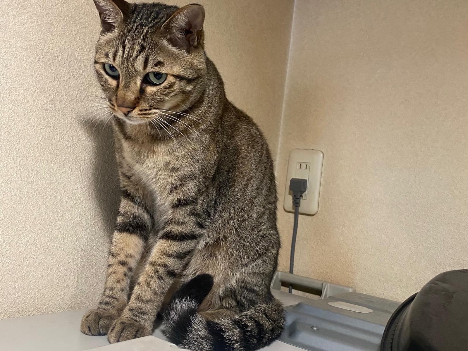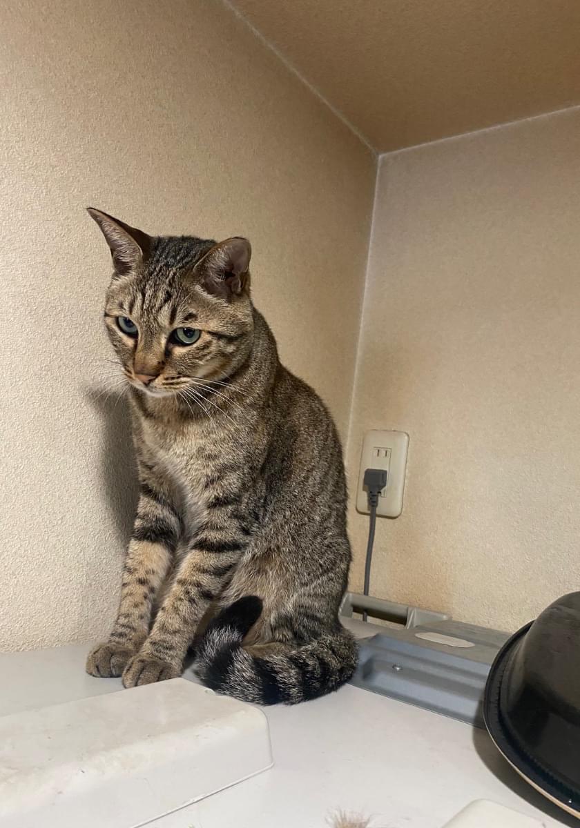 特徴は真っ直ぐな尻尾で、癖なのか背中をよくむしったりして少しハゲております。