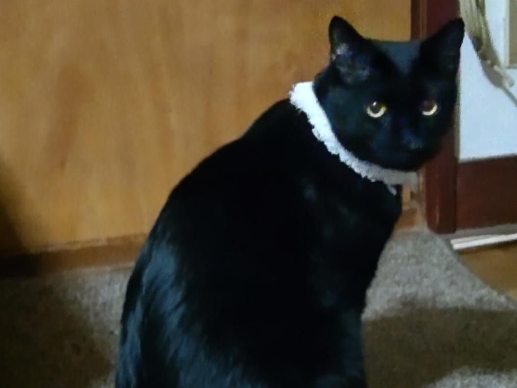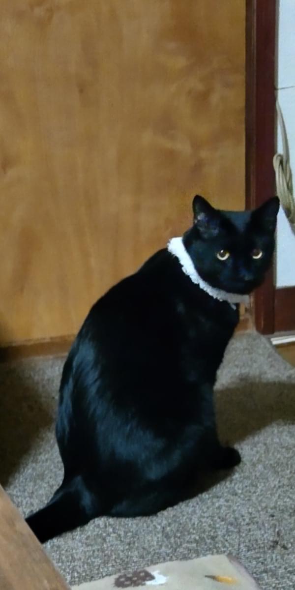 細身ですが体長60cm位の黒猫の雄(去勢済)を探しています。