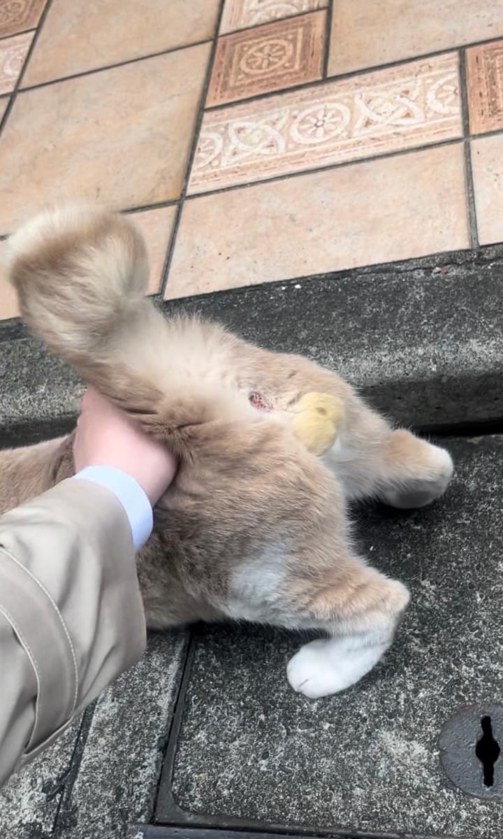 私の住む地域は野良猫が多いですが、この子は体が大きいのに喧嘩には凄く弱く、慣れてる人以外は触れないと思います。人間をみたらすぐ逃げる臆病な性格です。