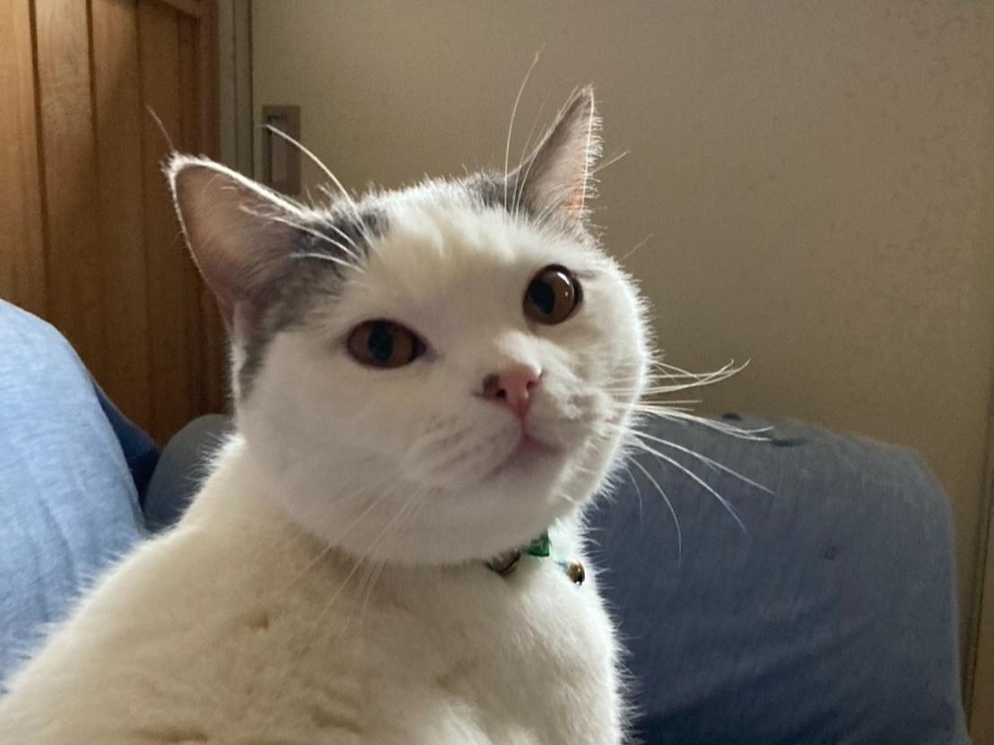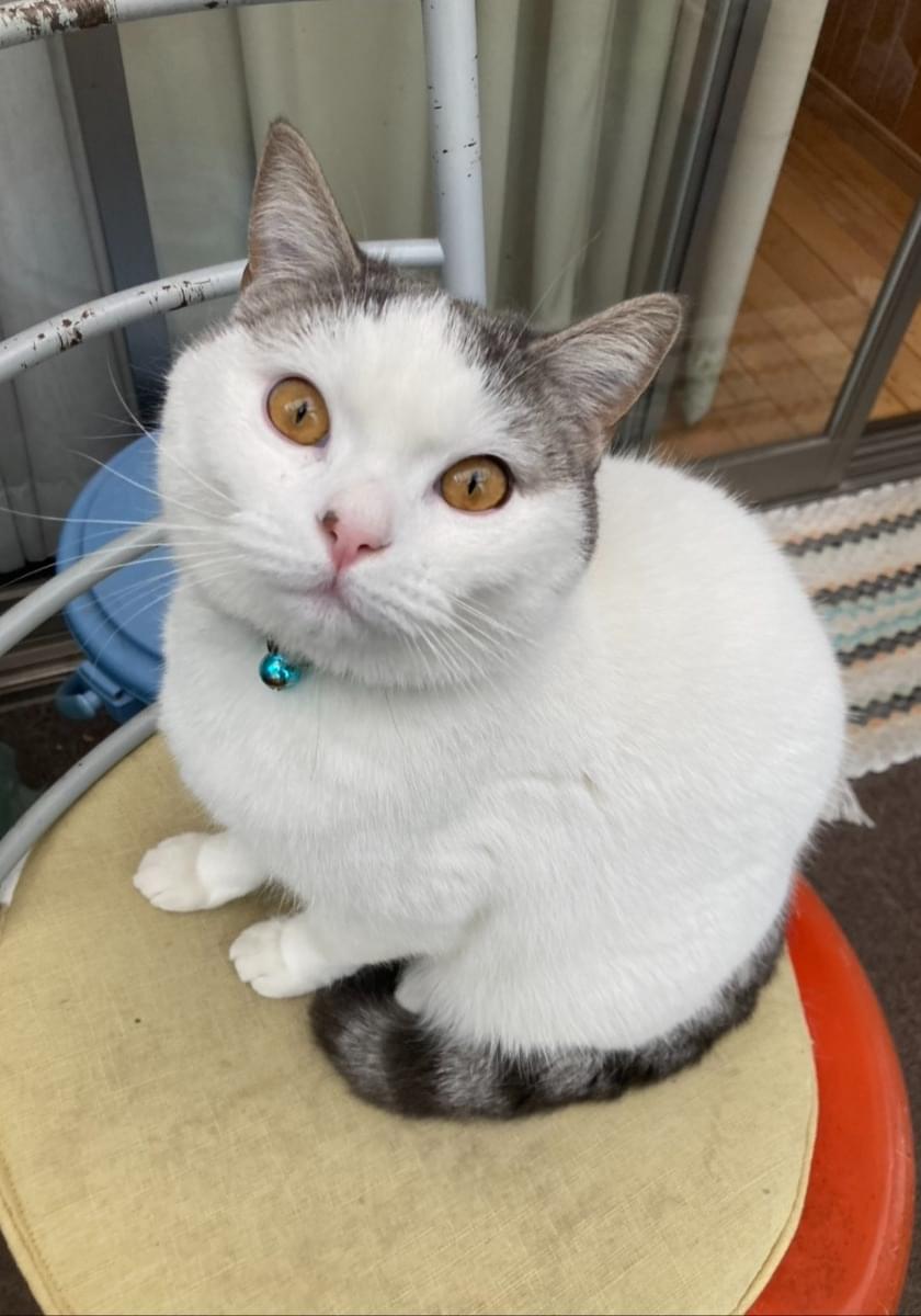 青い鈴付きの首輪をしています(もしかしたら外れているかも)。