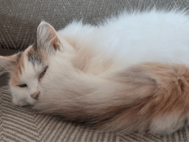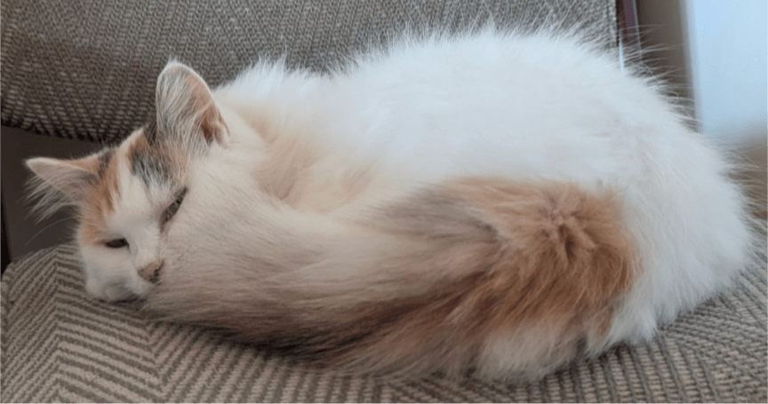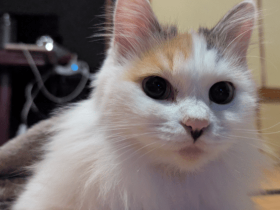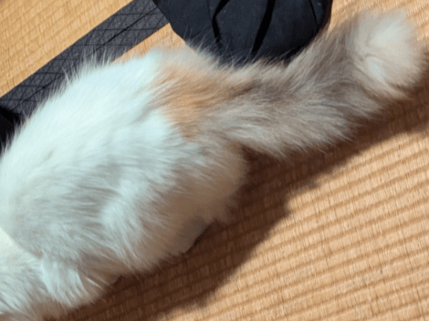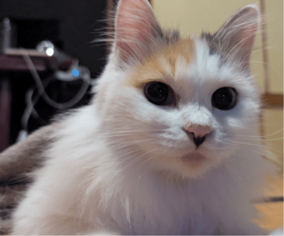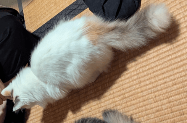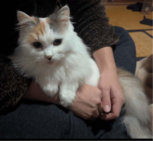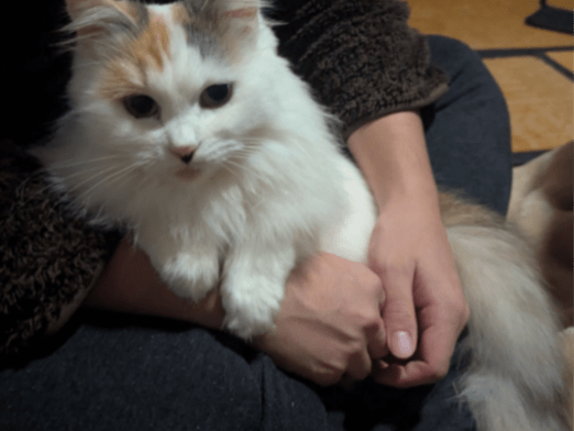 長毛の白ミケを探しています。頭と尻尾のみ三毛柄で他は真っ白