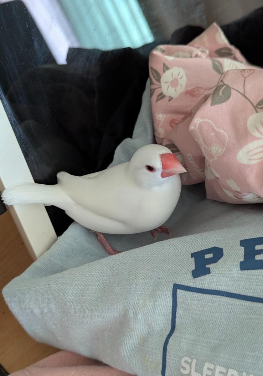 鏡が好きです。白い文鳥、くちばしは赤色、足も赤色です。目は黒い、目の周りが赤い。手のひらに乗ります。どうか、無事に帰ってきますよう、お願いします🙏美しく鳴きます。東南の方角に向かって逃げました。東南は、垂水区役所か、垂水駅東口方面です。小さいところ、狭いところが好きです。