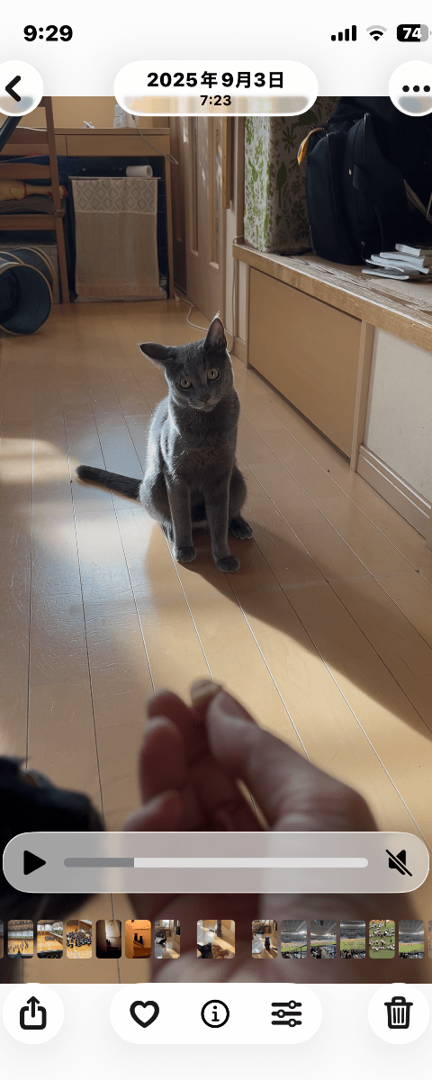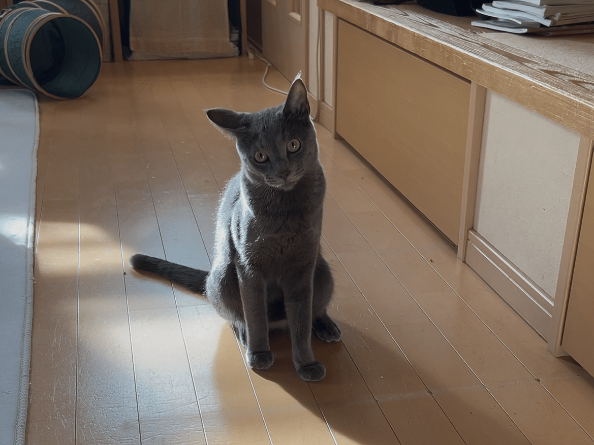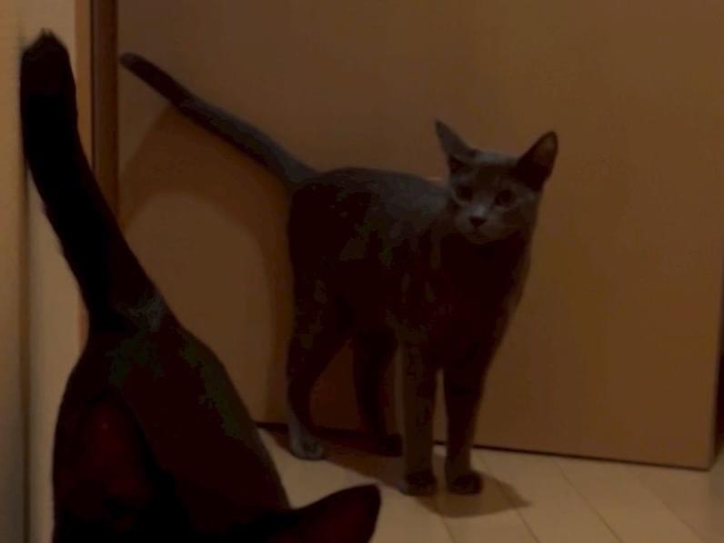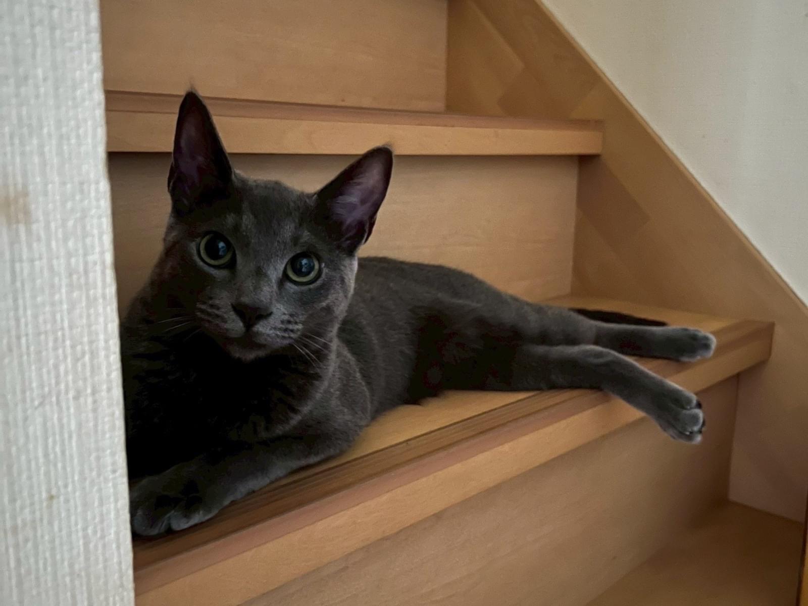 グレーで細身、長いシッポで先がちょっと曲がりありのの猫探しています