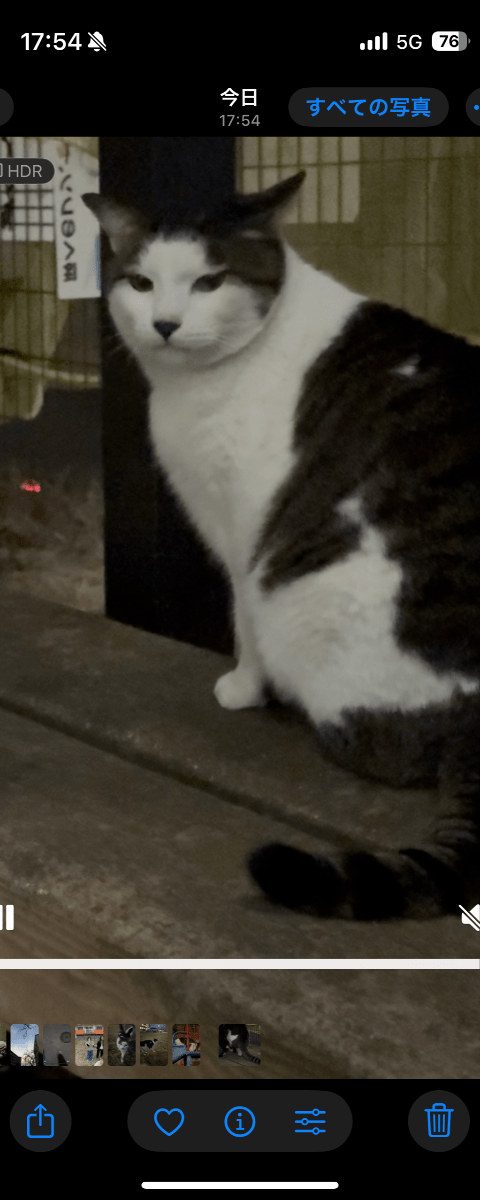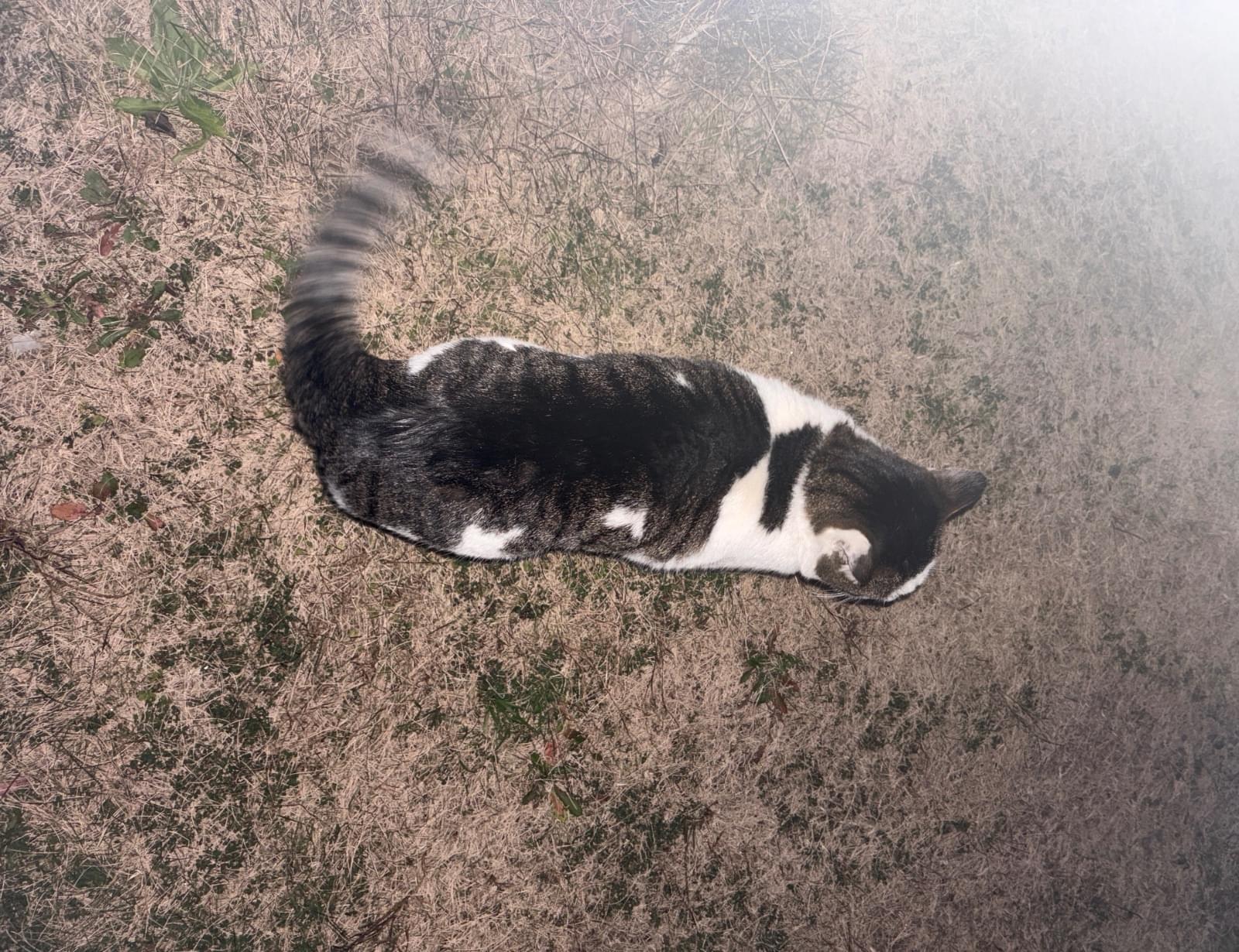 茶色と白の毛並みをした右腹に白い模様がある猫を目撃しました