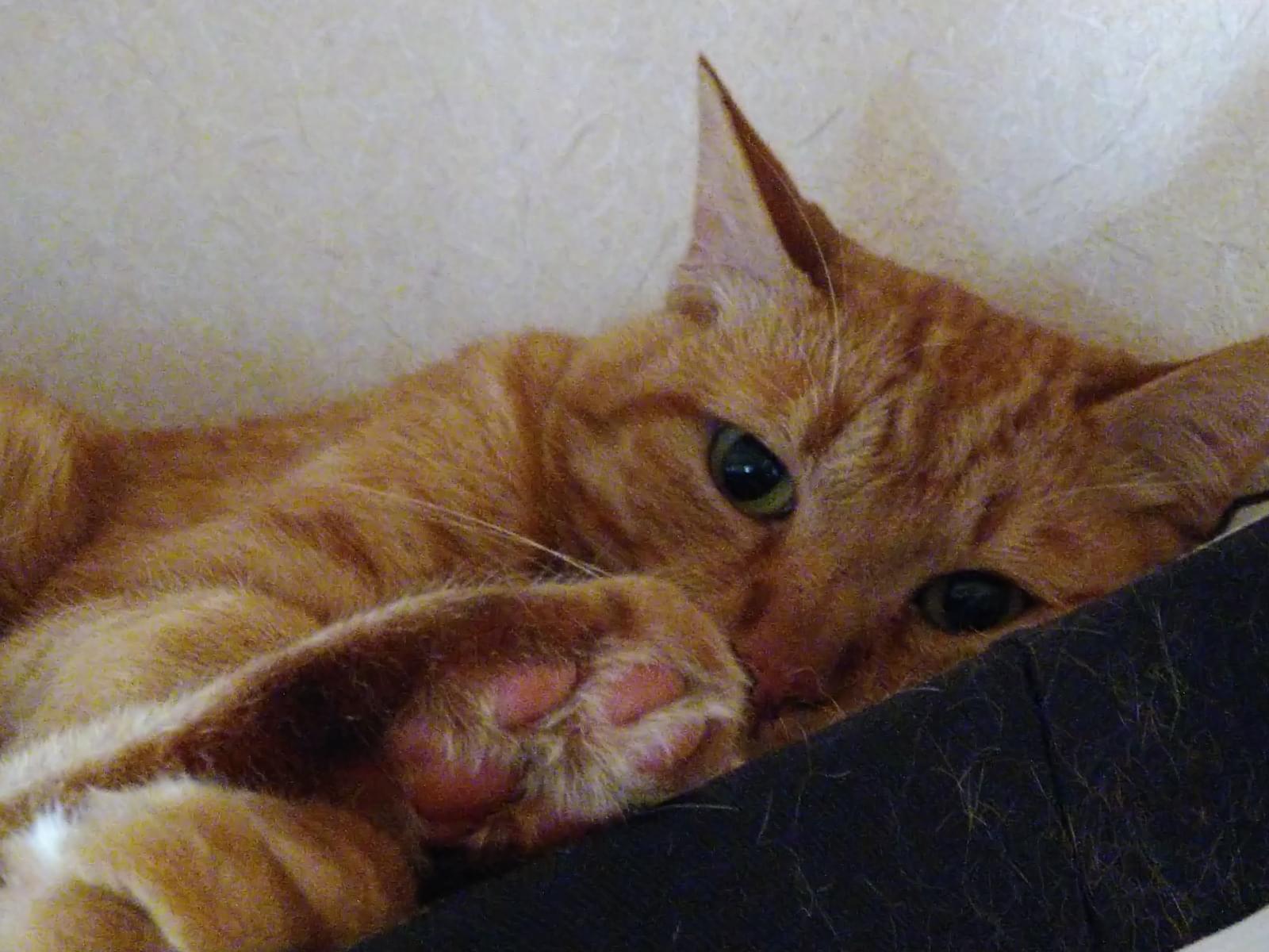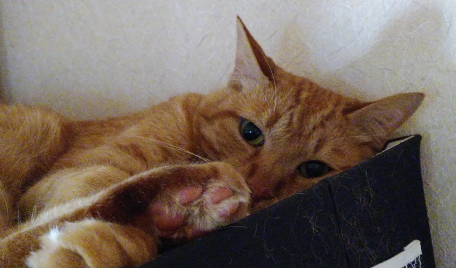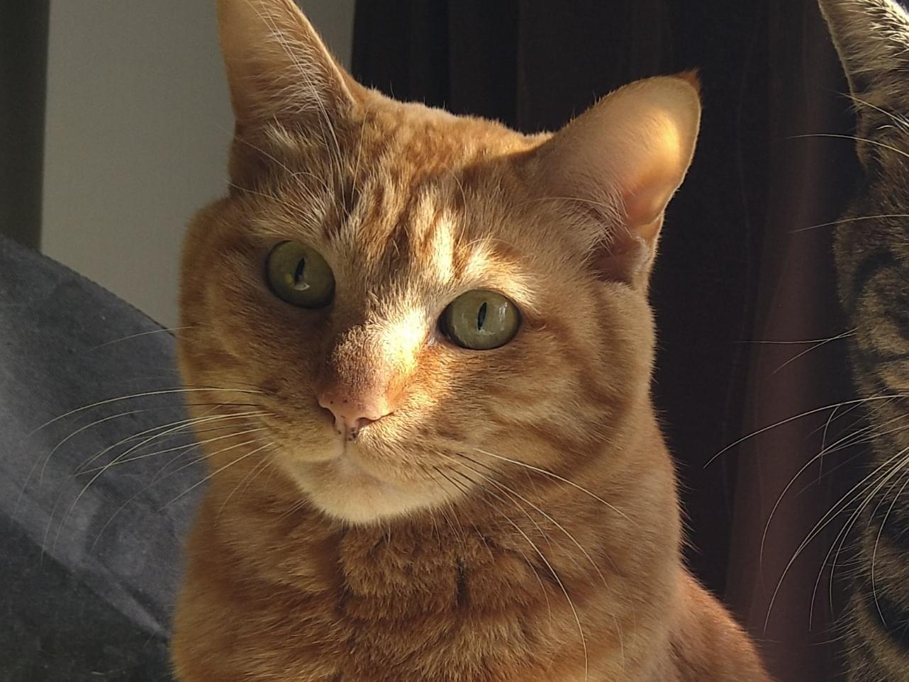 マンションの隣人宅の窓から侵入しており、約2日間じっとしていた様子。隣人からお宅の猫ちゃんがウチにいるかもと知らせを受け無事保護となりました。