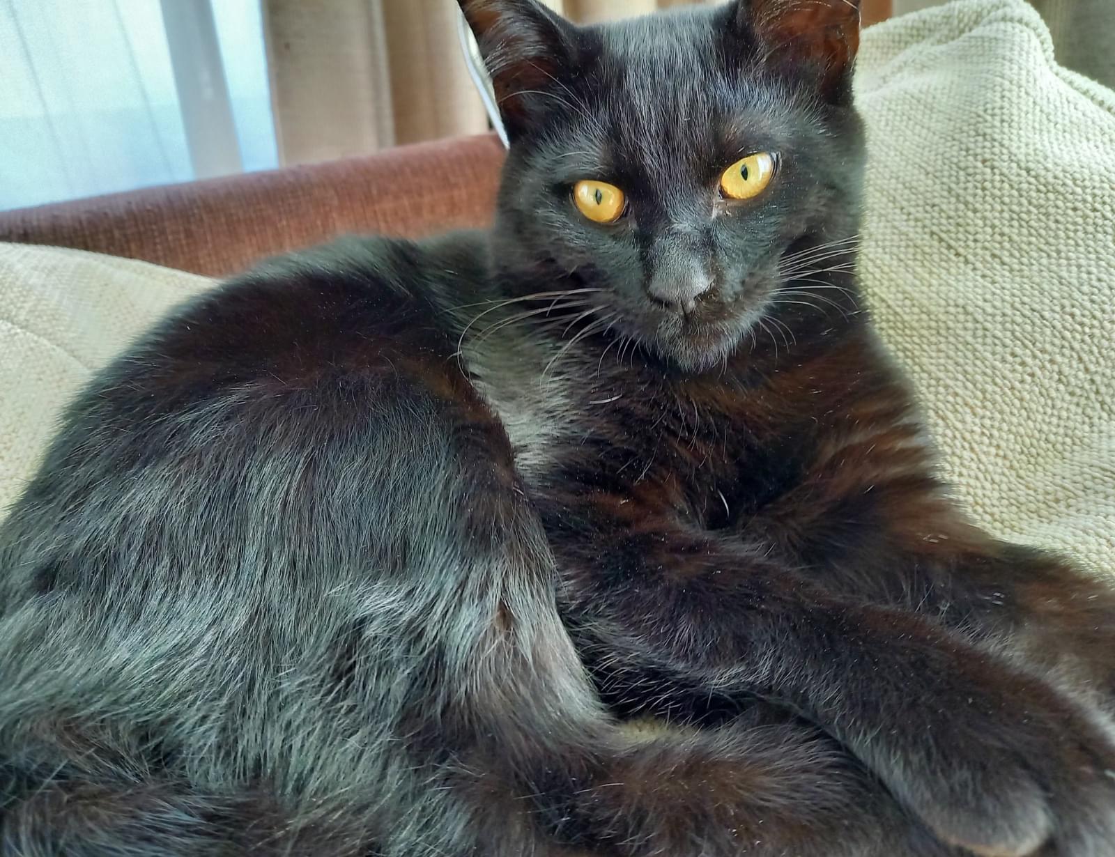 左目に睫毛の様に見える白い毛が1本生えている真っ黒の猫を探しています