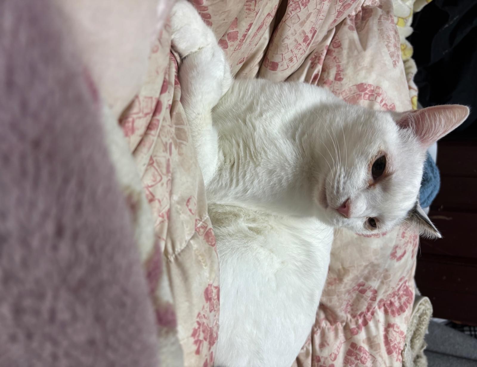 12日頃より姿の見えなくなった白黒の猫のオス猫を探しています。特徴 とても人懐っこい性格です。片目が開きにくい、全体は白く右耳、右前脚、しっぽが黒い。猫風邪気味なので鼻が詰まっています。去勢済み。