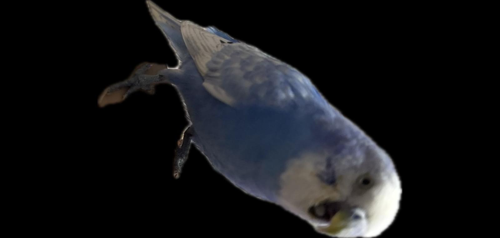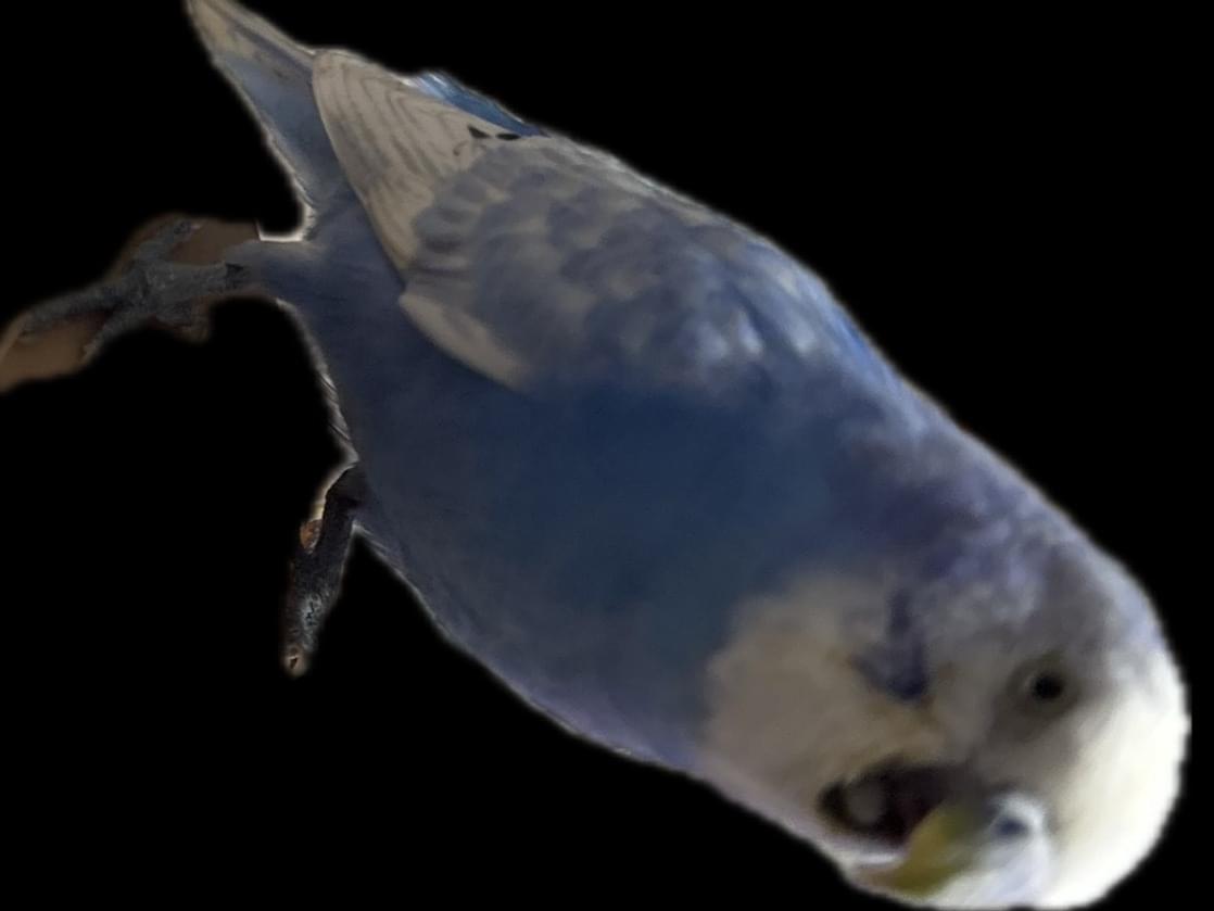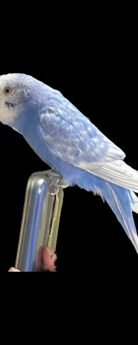 キレイな水色と白のセキセイインコです。黒い模様がほとんどありません。