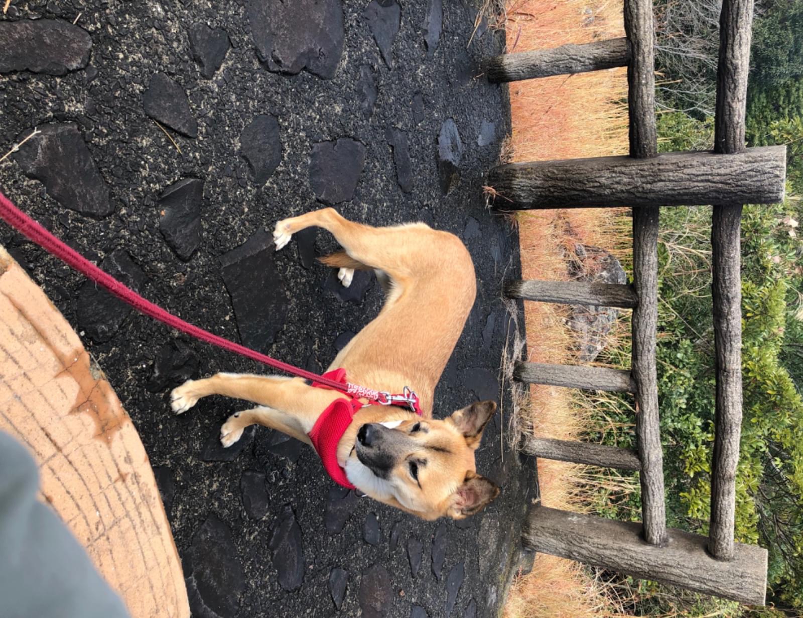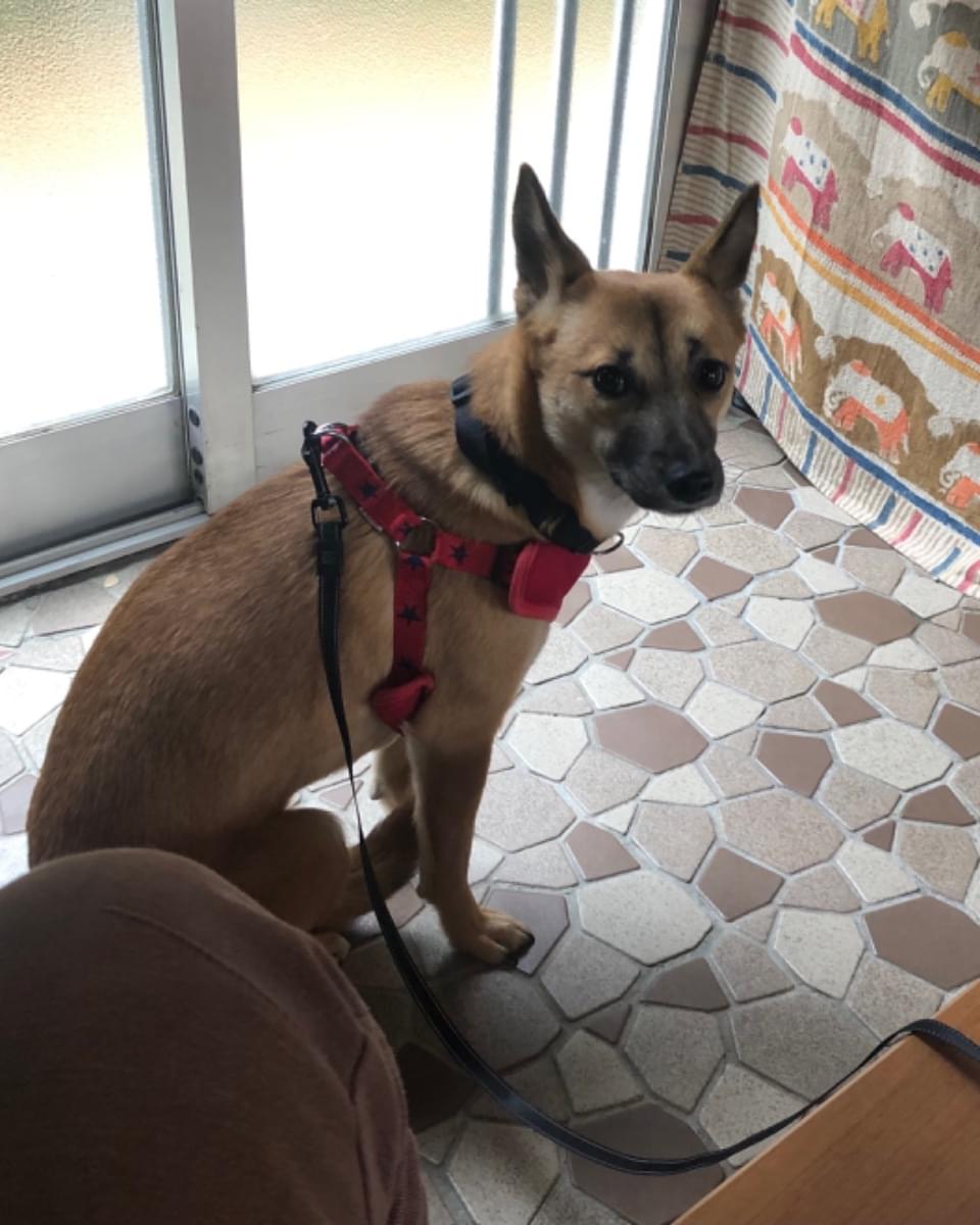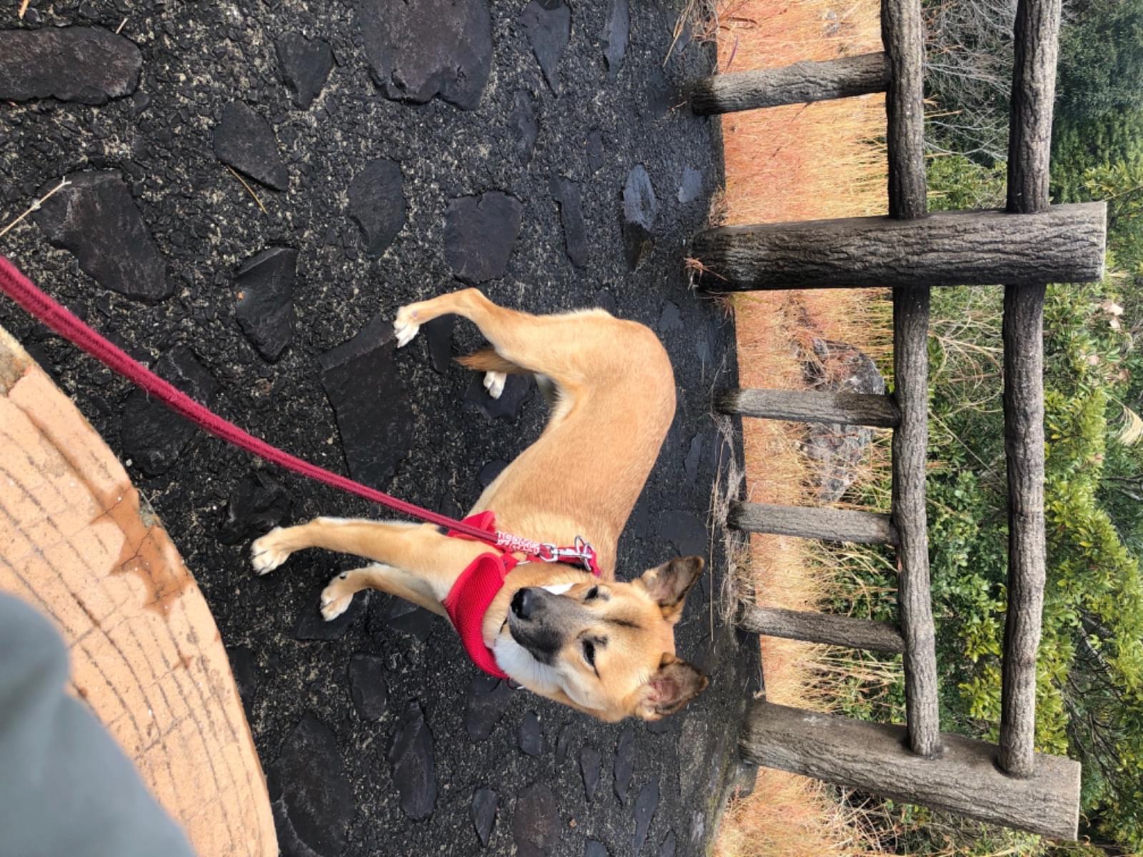 脱走時赤いハーネス着用、すごく怖がりで人や車を怖がります。