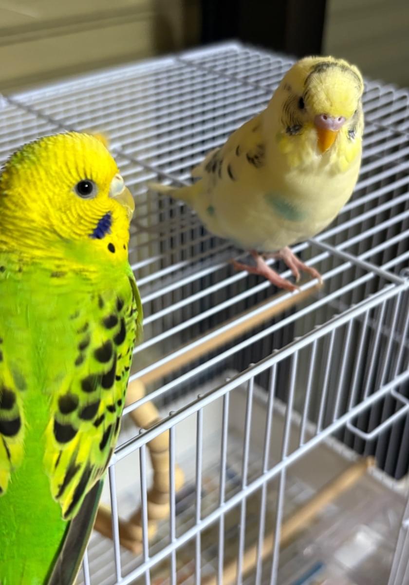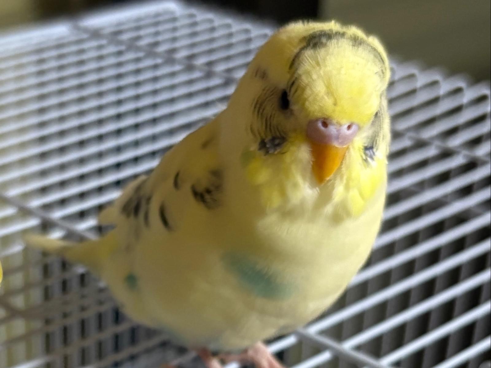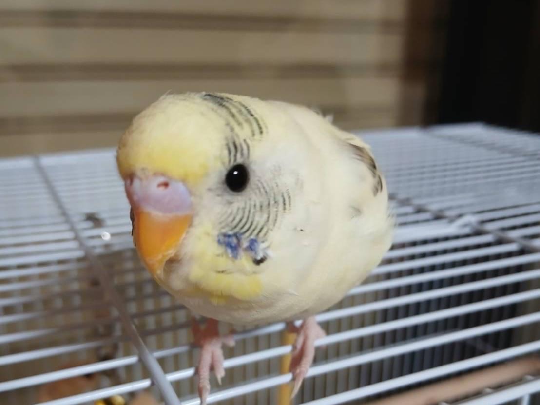 黄色みがかった白のセキセイインコ