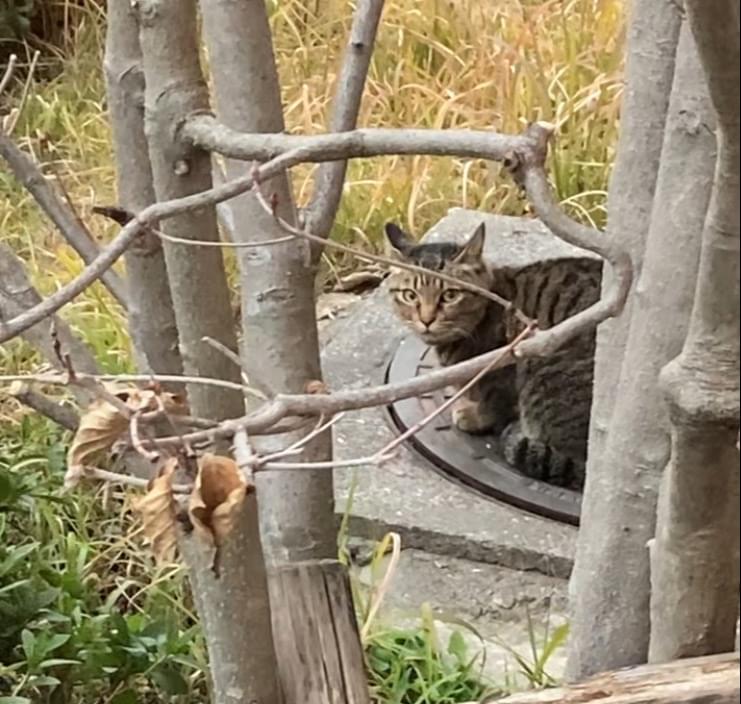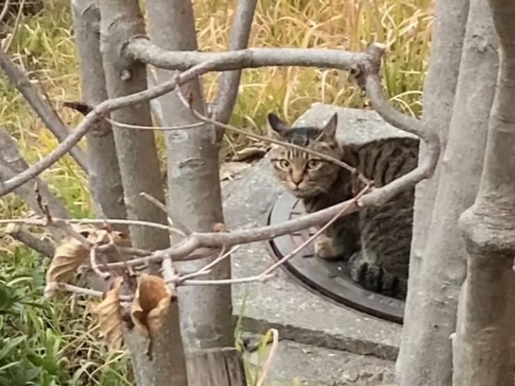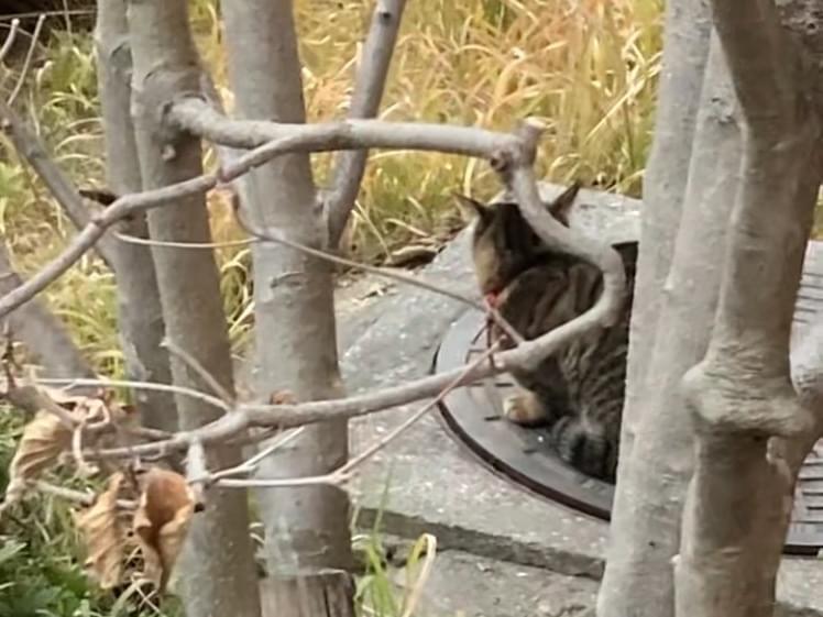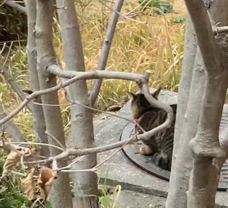 最初の目撃は2022年の9月頃。赤い首輪をつけていたので飼い猫だと思っていました。