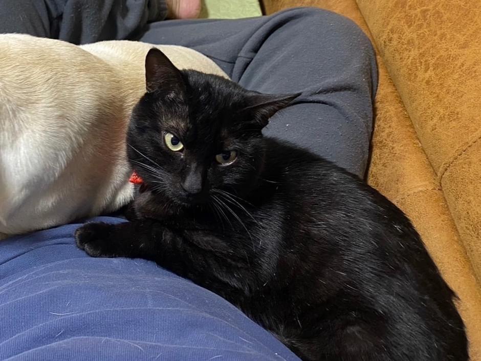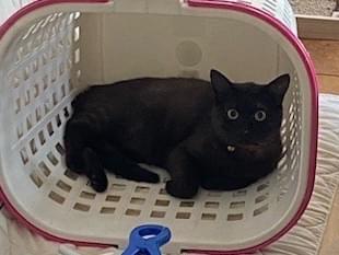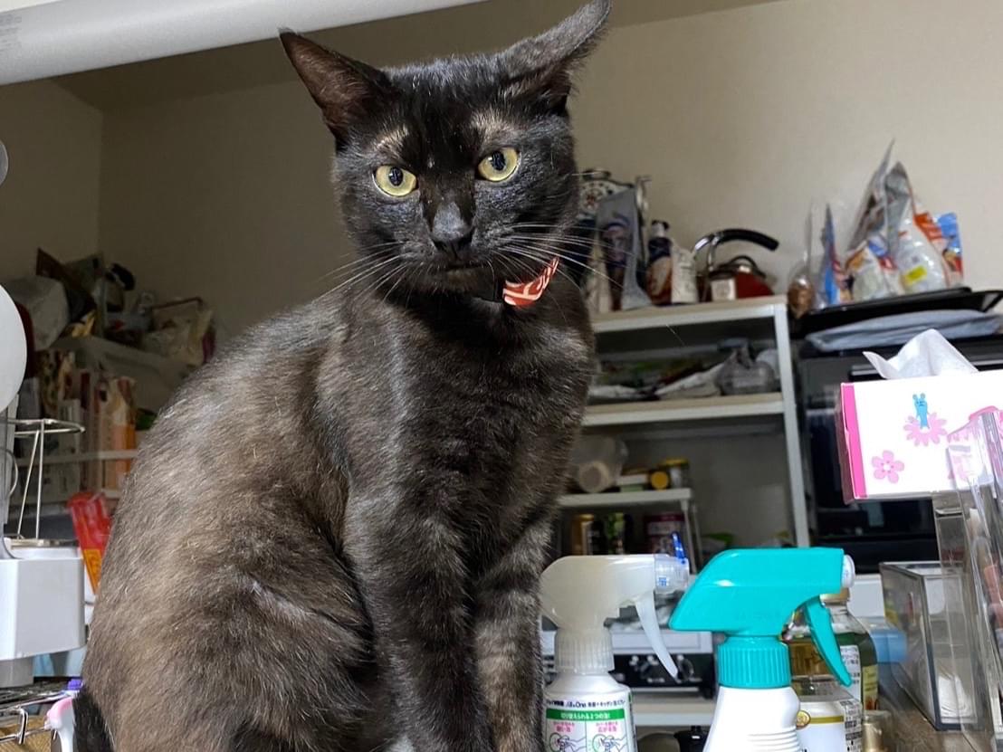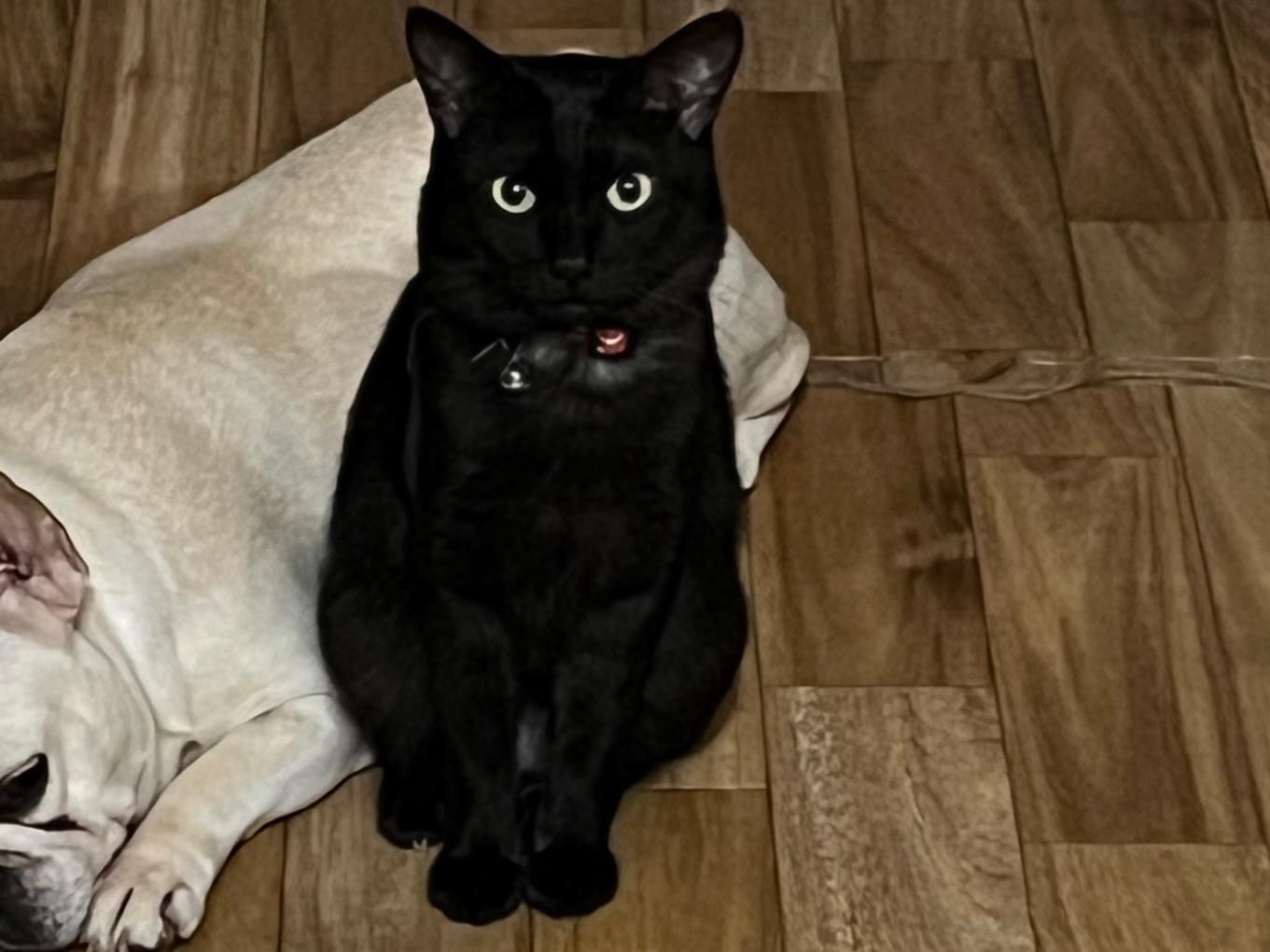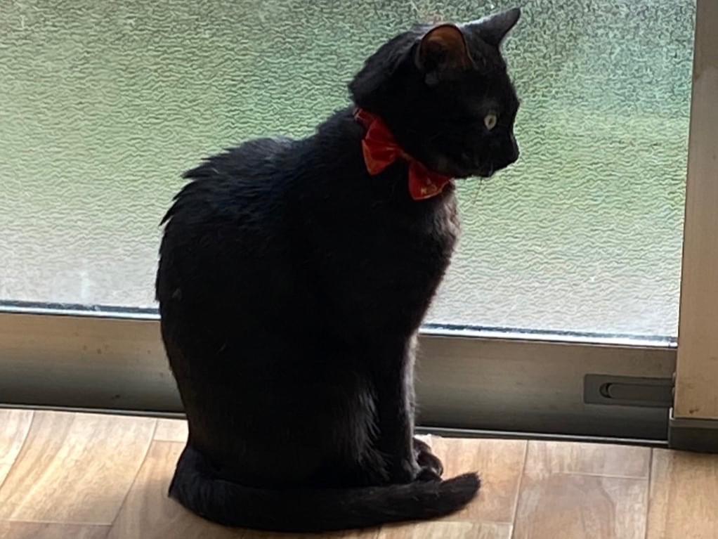 首輪をつけた黒猫ちゃんです