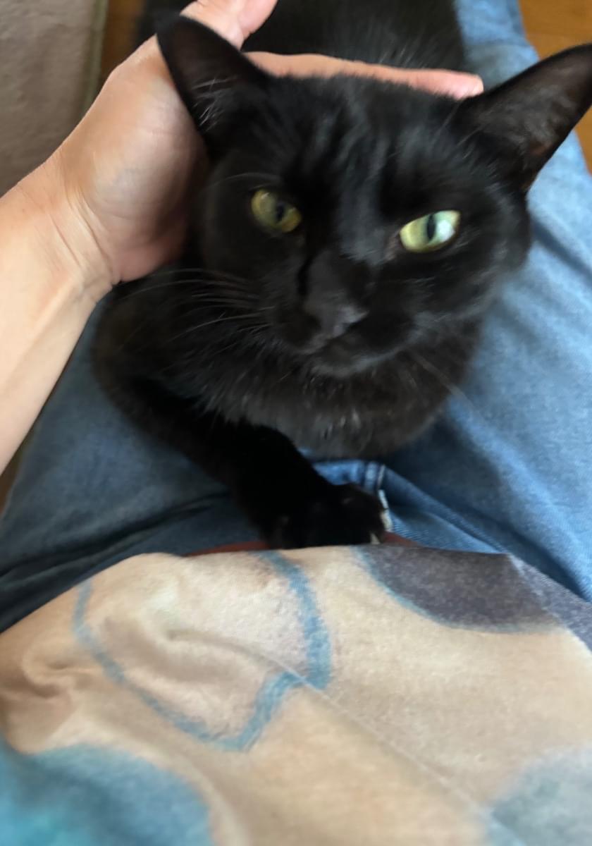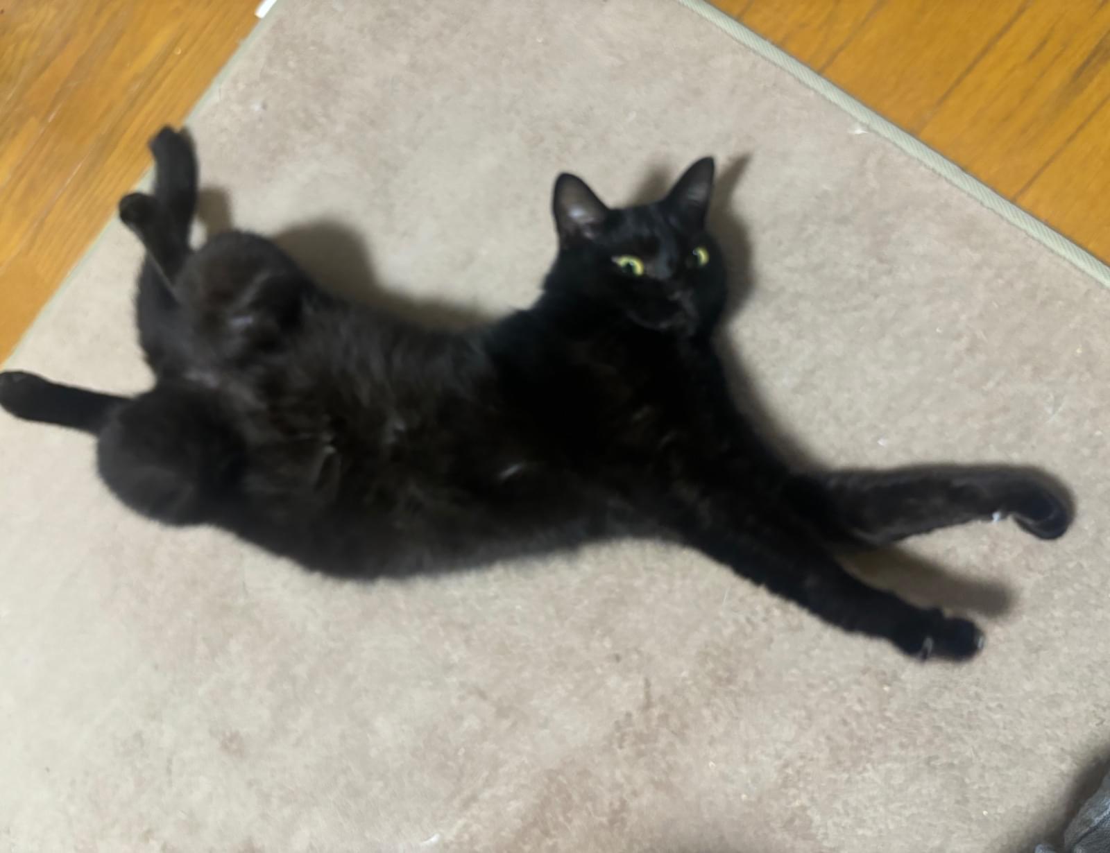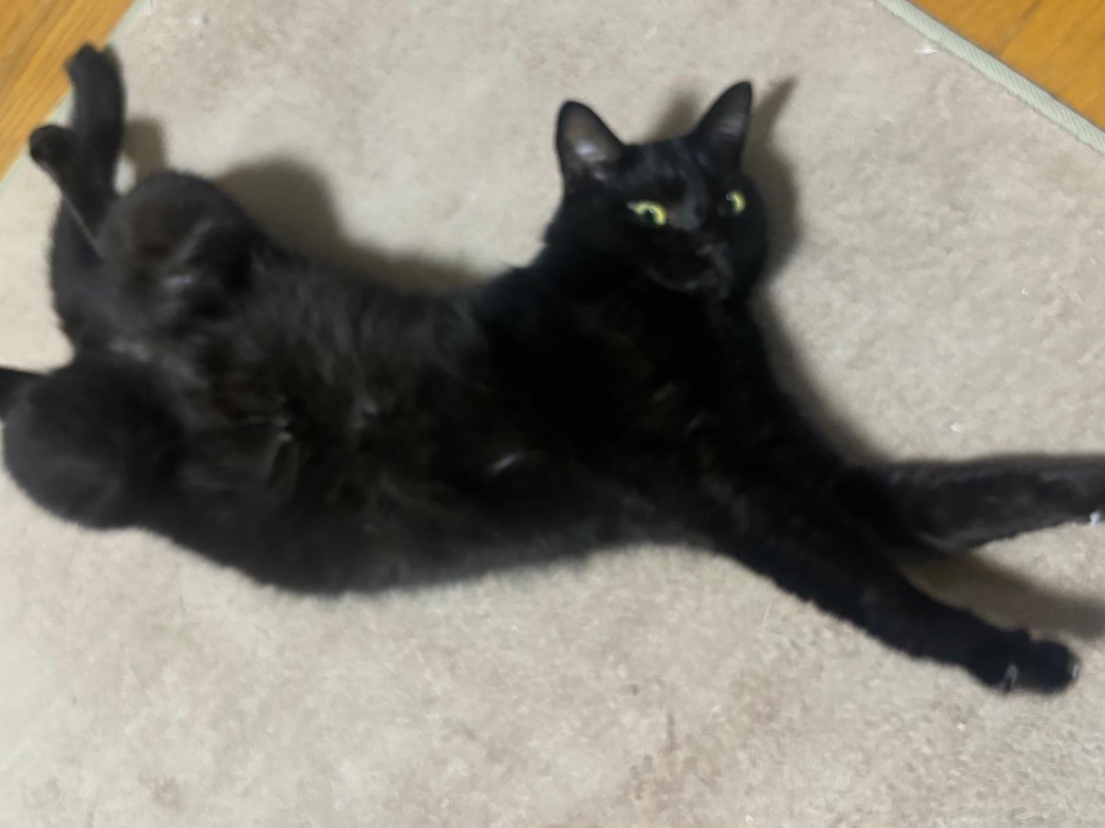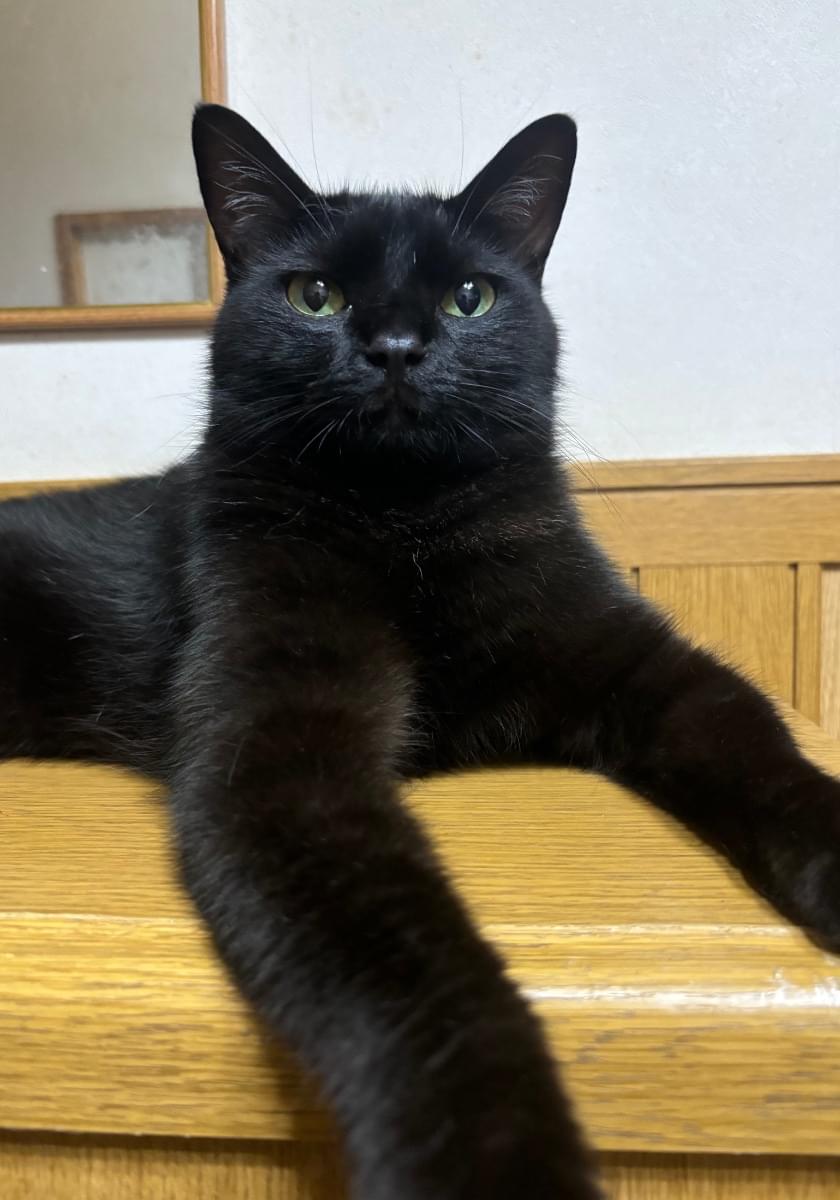 真っ黒で毛艶のいいぽっちゃりした猫です