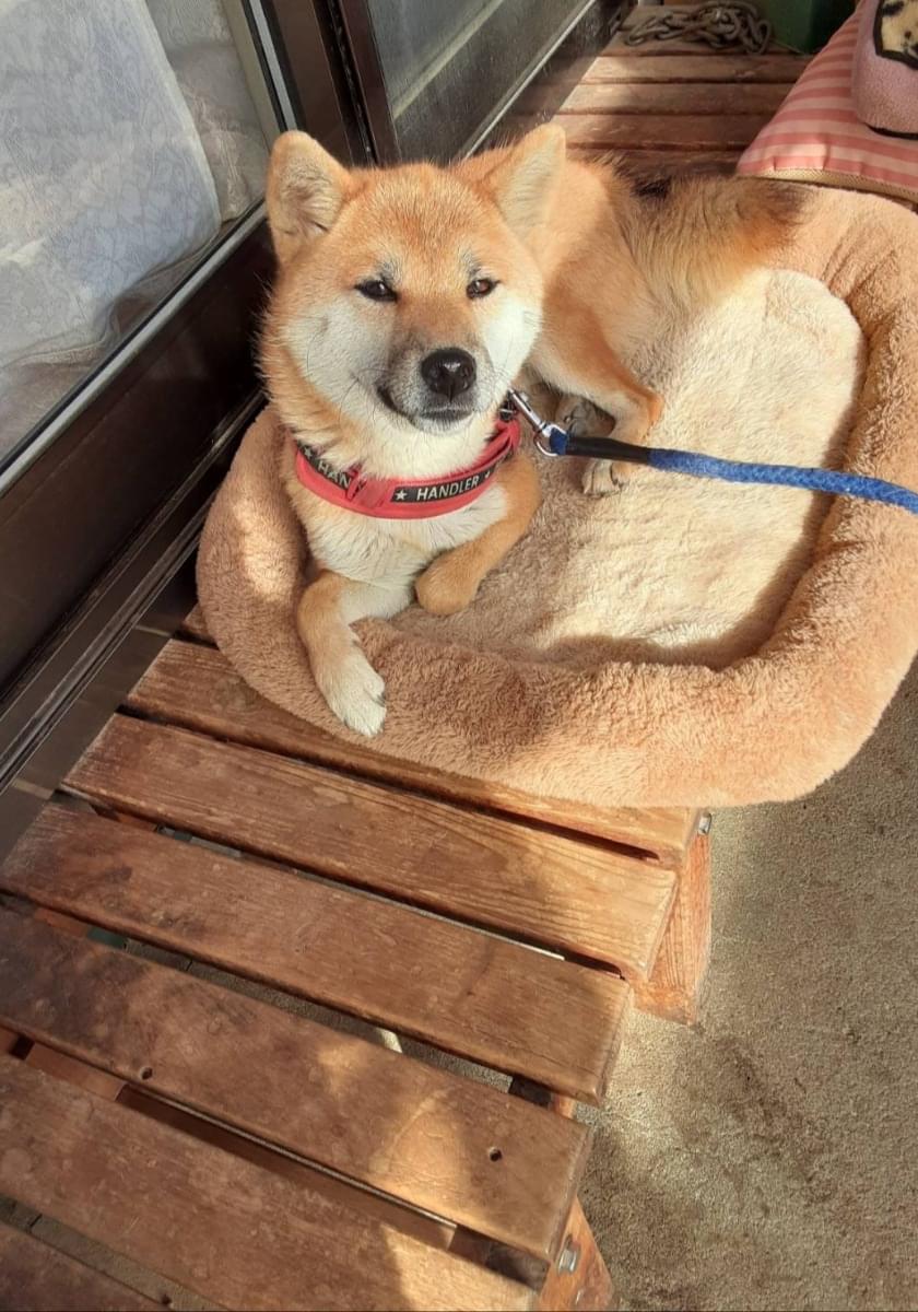 繋いでいたロープの金具が壊れて自宅から脱走してしまったそうです。赤いハーネスと青いロープが付いています。臆病な性格の女の子です。