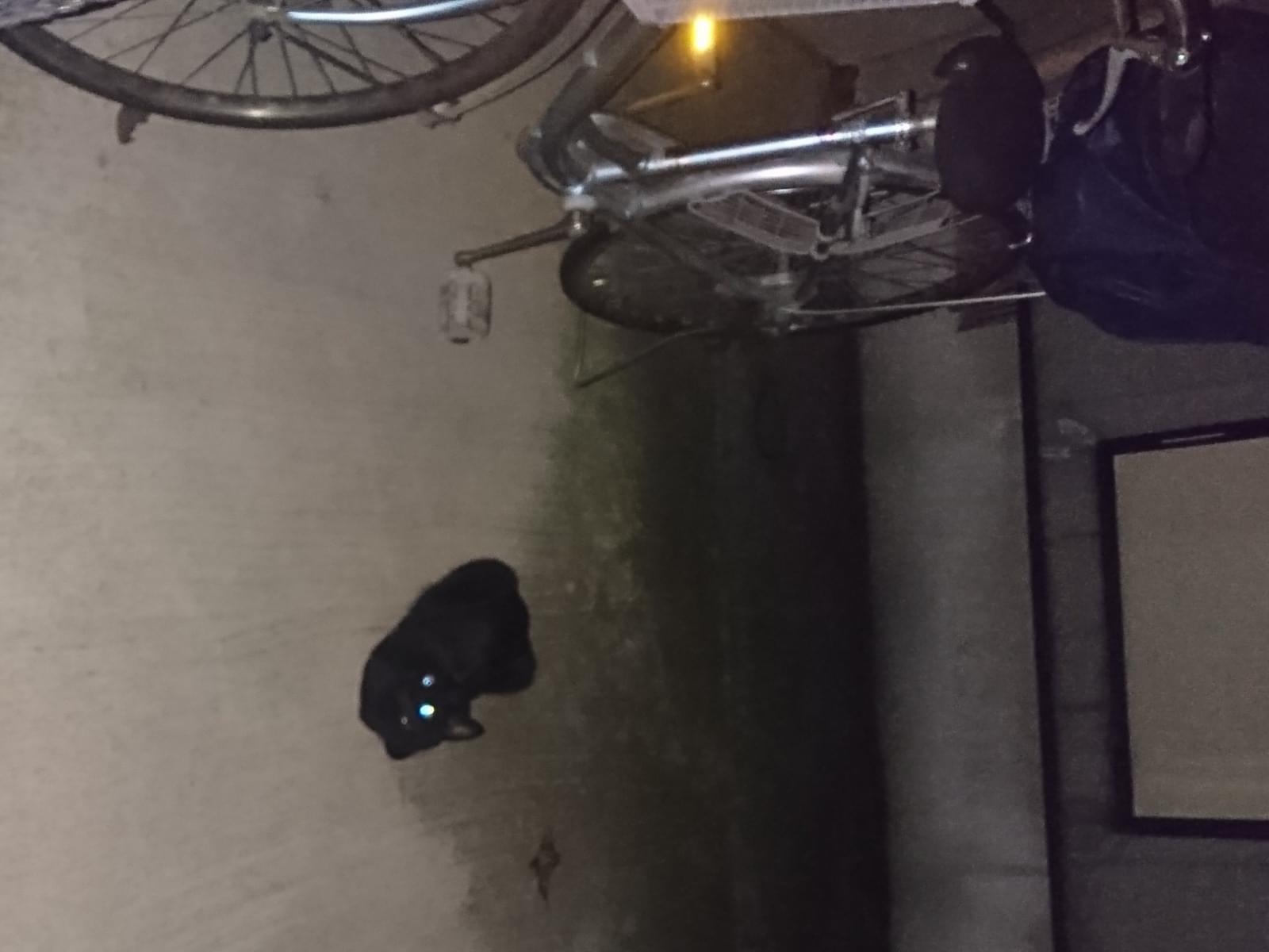 人なつこい黒の子猫ちゃんを目撃しました。反射材の水色っぽい首輪。名札なし。短めのかぎしっぽ。お腹がすいているようで、スリスリと寄ってきました。迷い猫ちゃんでしょうか…。雨が降ってきましたが、屋根付きの駐車場で雨宿りなさってます。