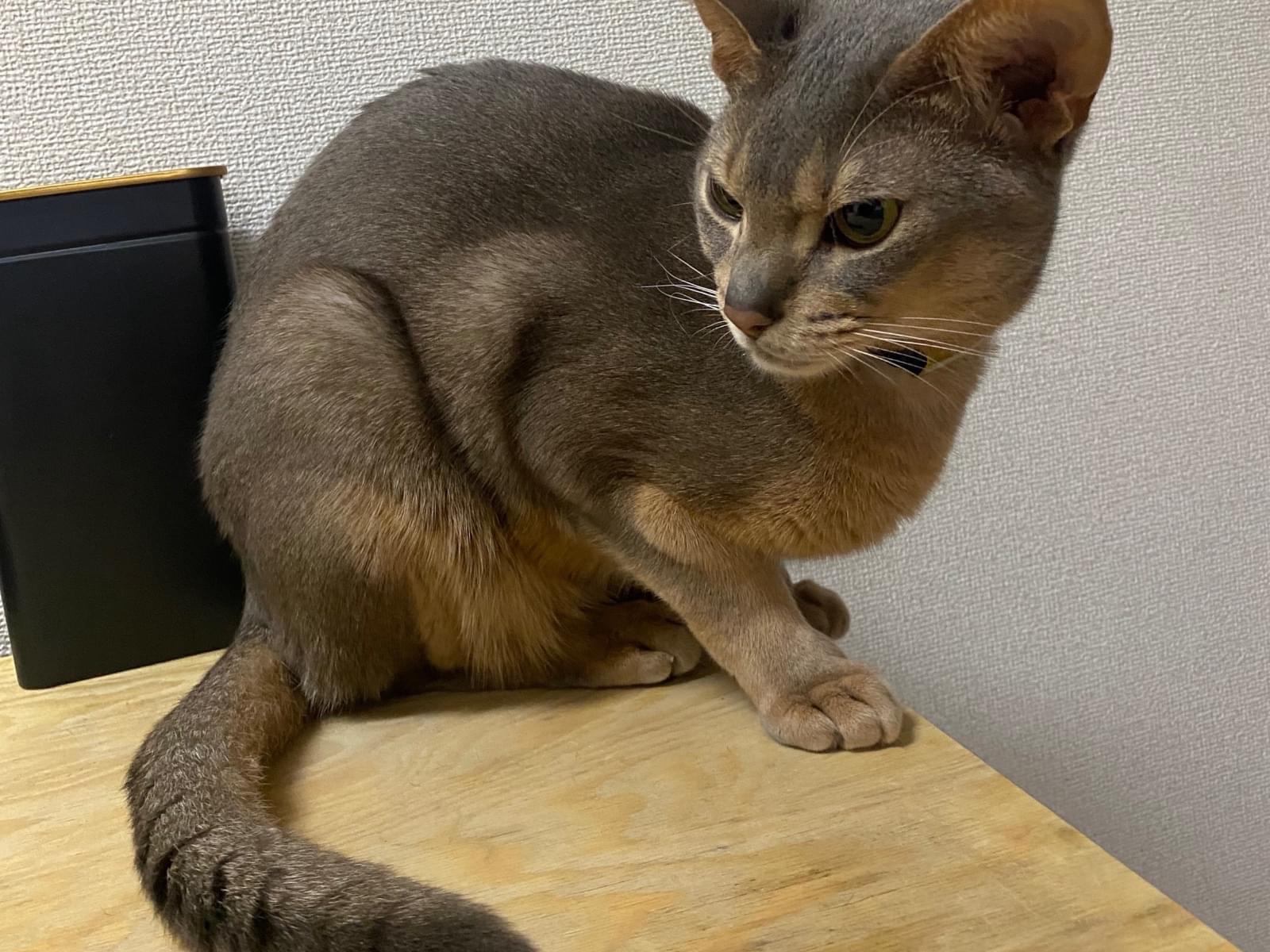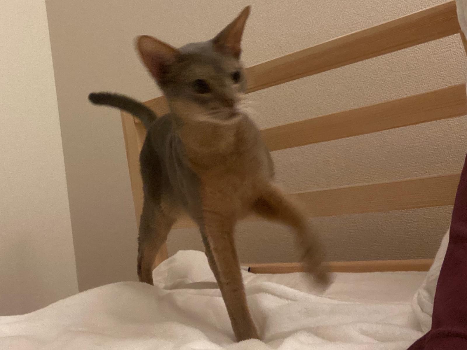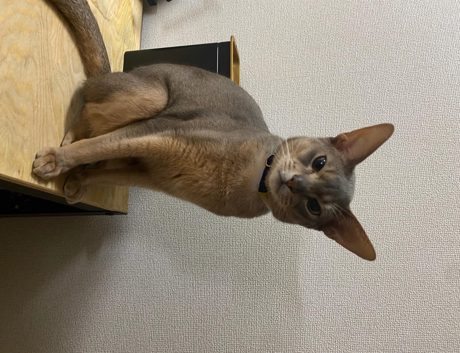 猫が迷子です。種類はアビシニアンでグレーです。右後ろ足の毛が薄くなってるところがあります。体は細身でシッポが長いです