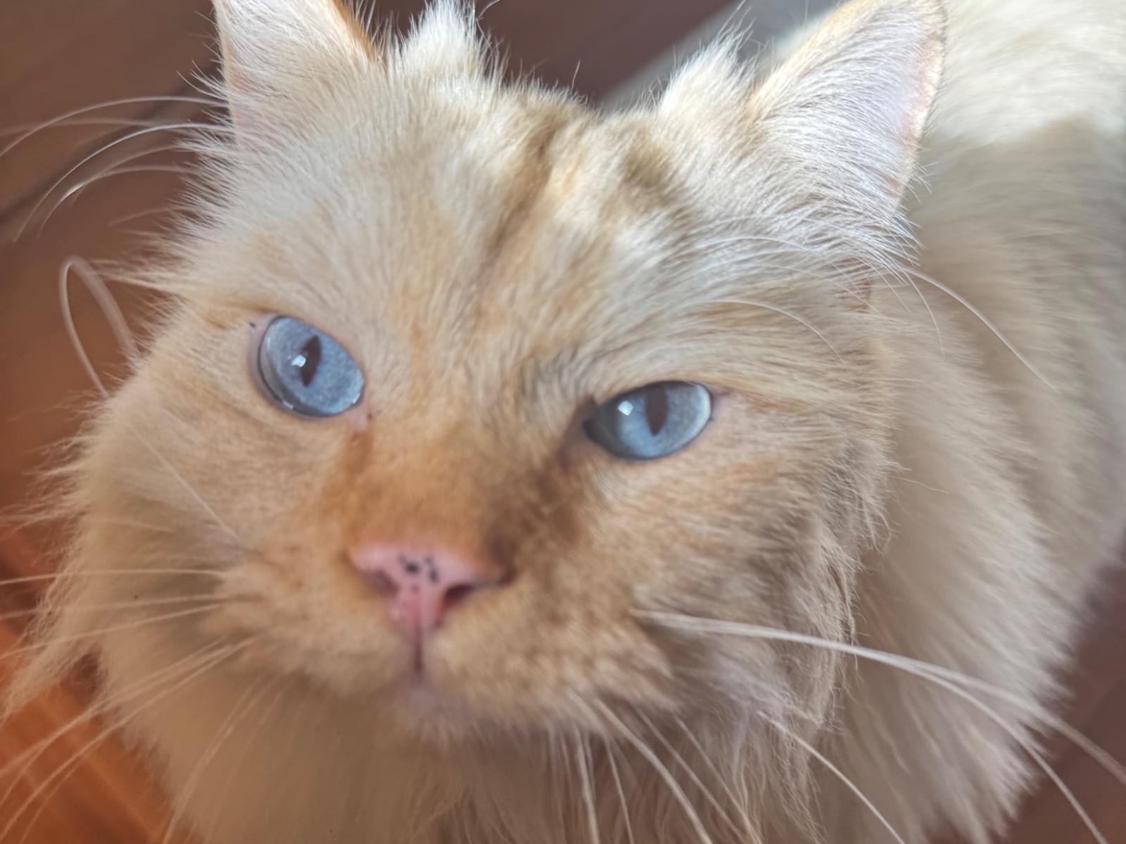 毛色 白多めに顔はベージュ、尾は薄汚れたグレー?