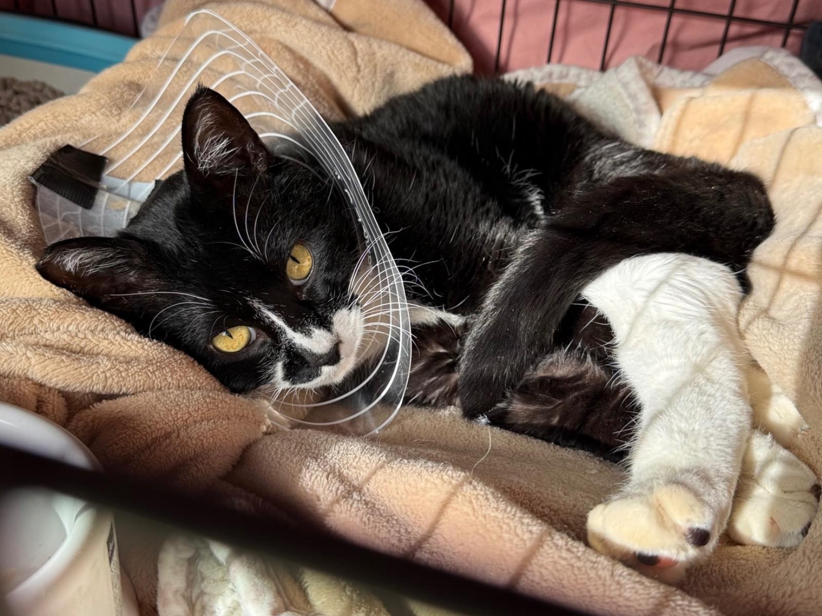 12月に手術したばかりなので(抜糸は済みました)、右脚付け根の剃毛した部分だけまだ毛が短いです。