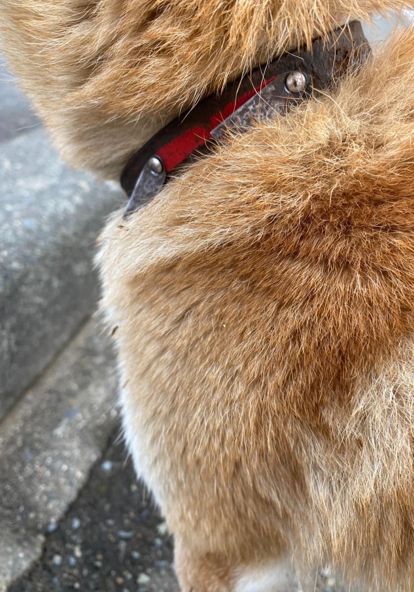 柴犬系で、ボロボロになった赤い首輪(画像3)をしており、呼び掛けると近付いてきてくれる人懐こい子です。