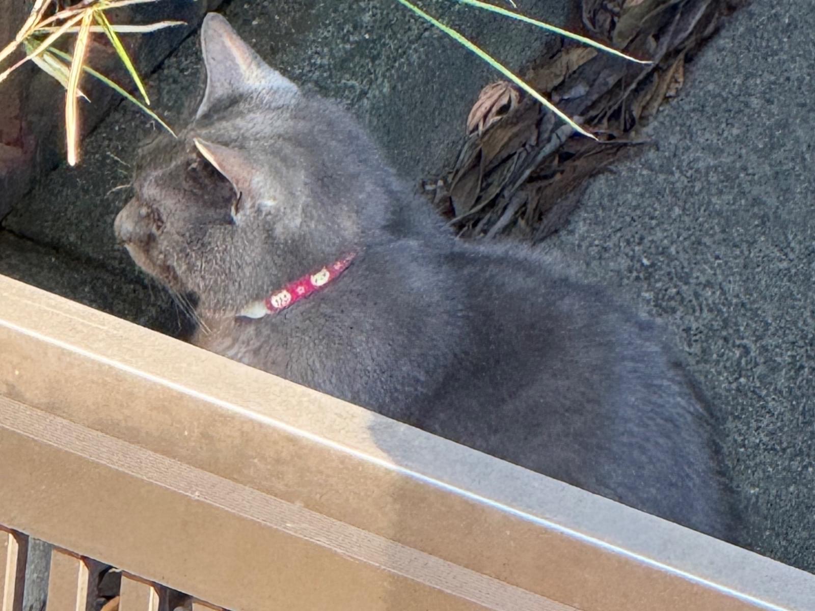 赤色の首輪をしたグレーの猫ちゃんを探してる方いませんか?