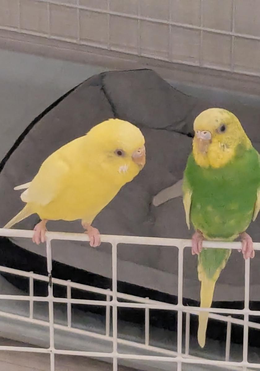 転んで網戸を突き破ってしまい、放鳥中に驚いたセキセイインコが逃げてしまいました。