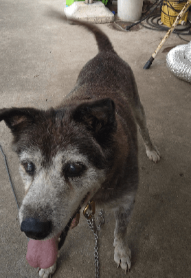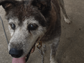 自宅から居なくなった老犬を探しています。白髪顔の黒と茶色トラ模様。