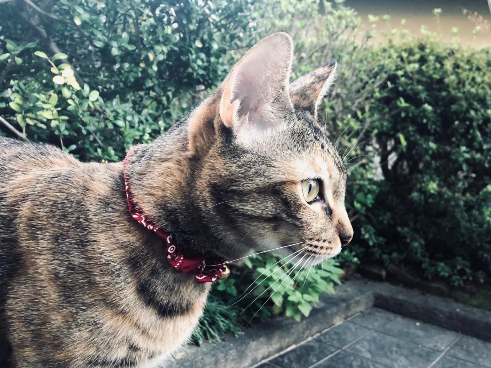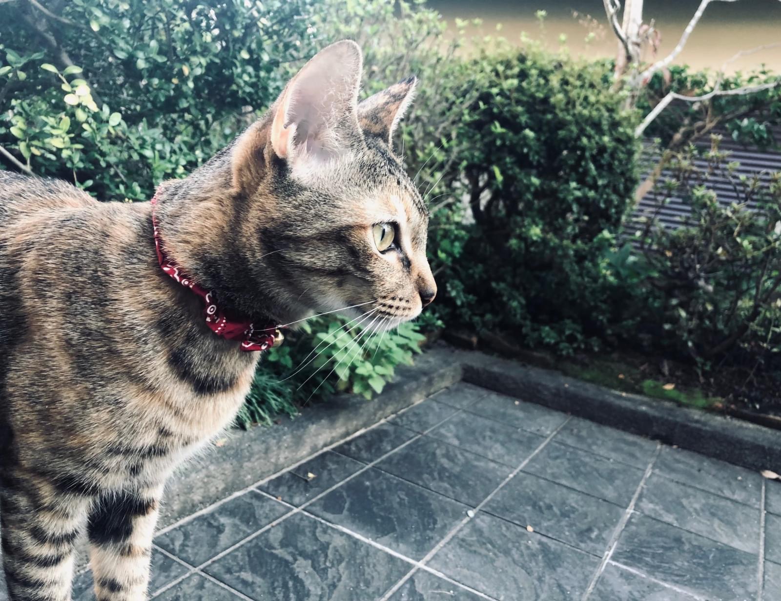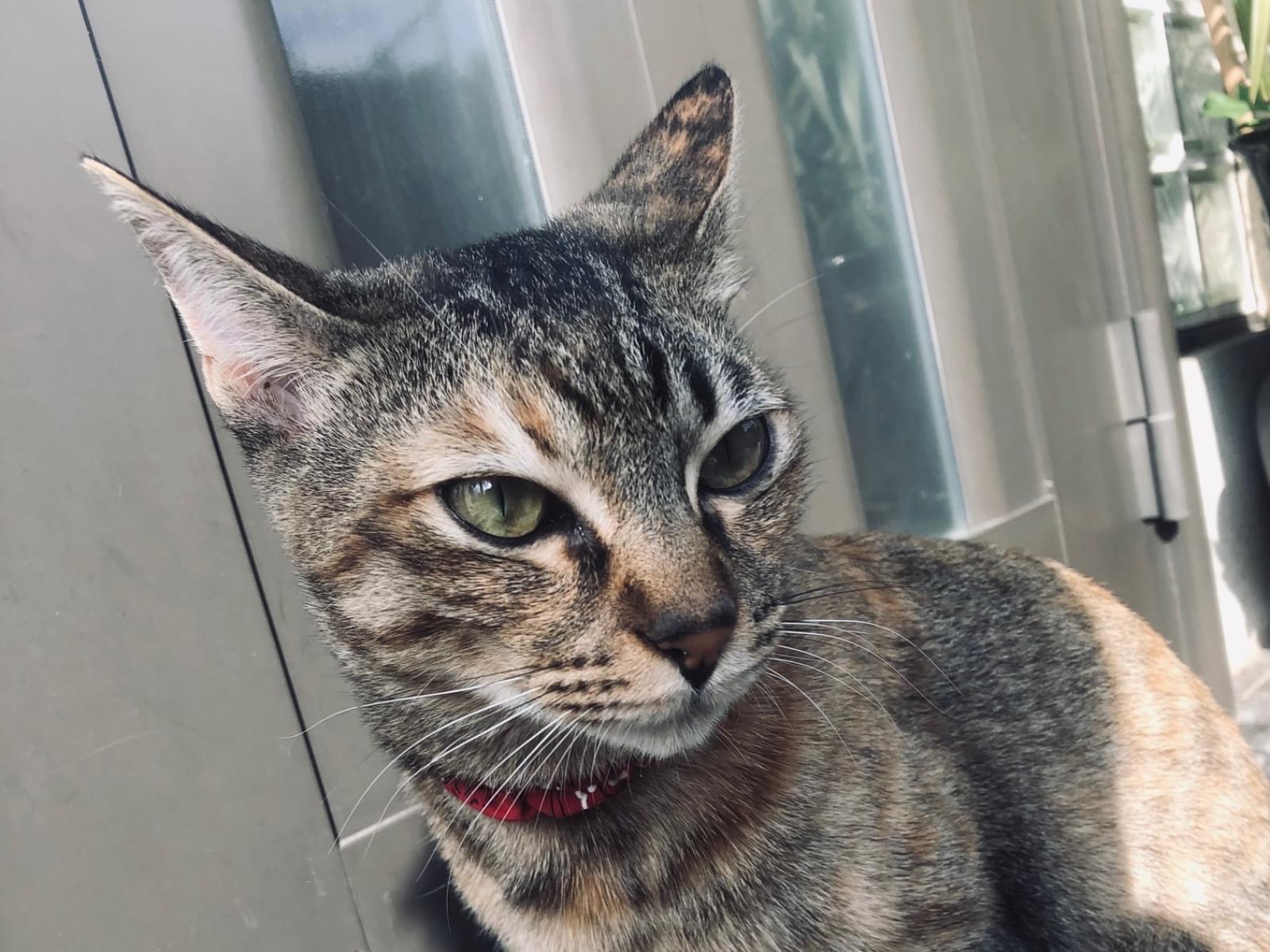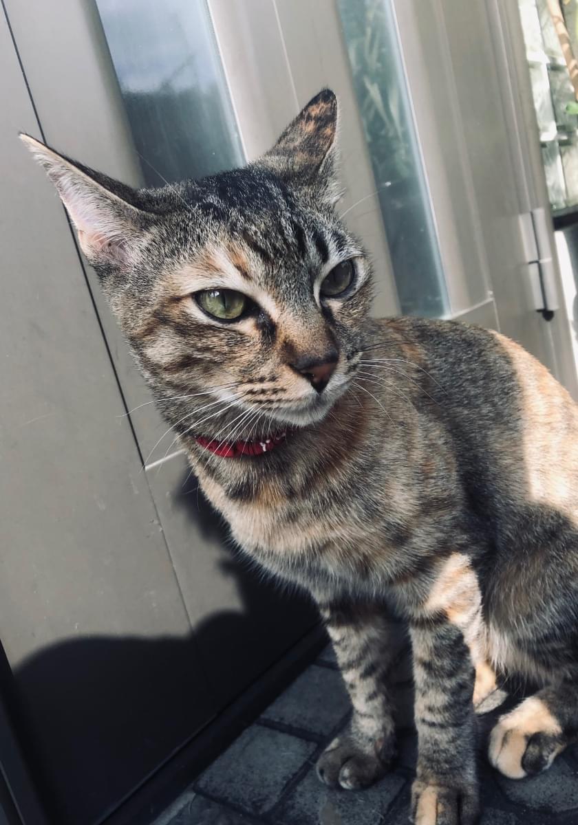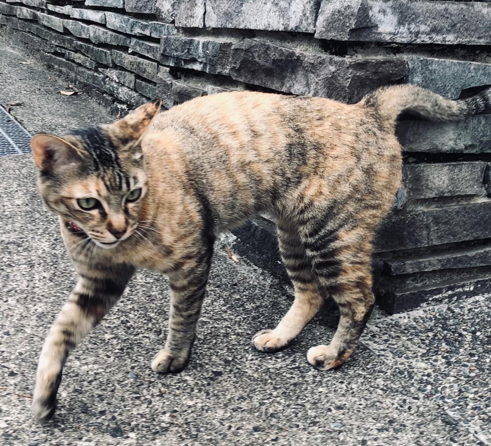 外に出て遊ぶのが好きな猫で、ある日突然姿を消してしまいました。メスで体は大きくはなく細長いシルエットで、尾も長いです。