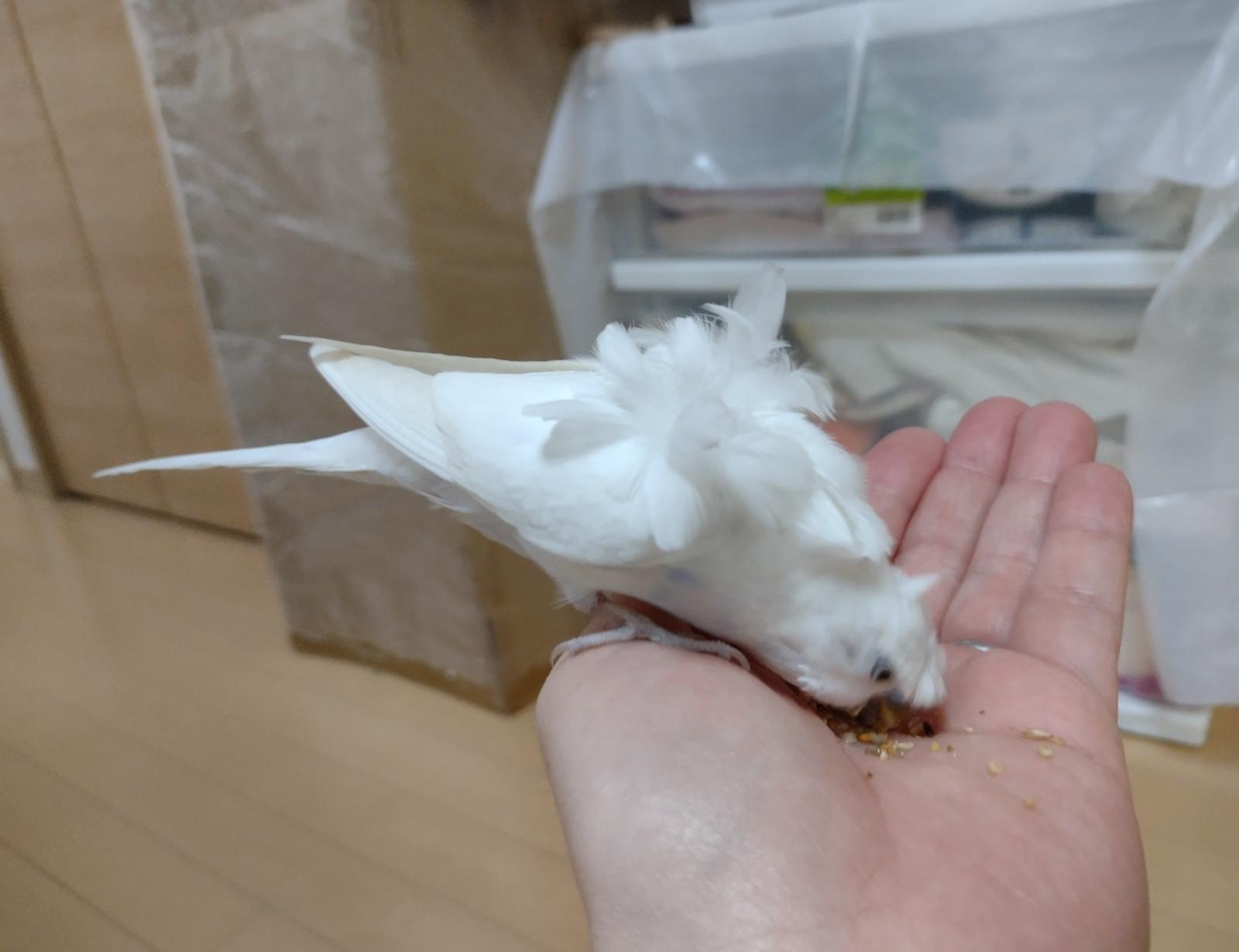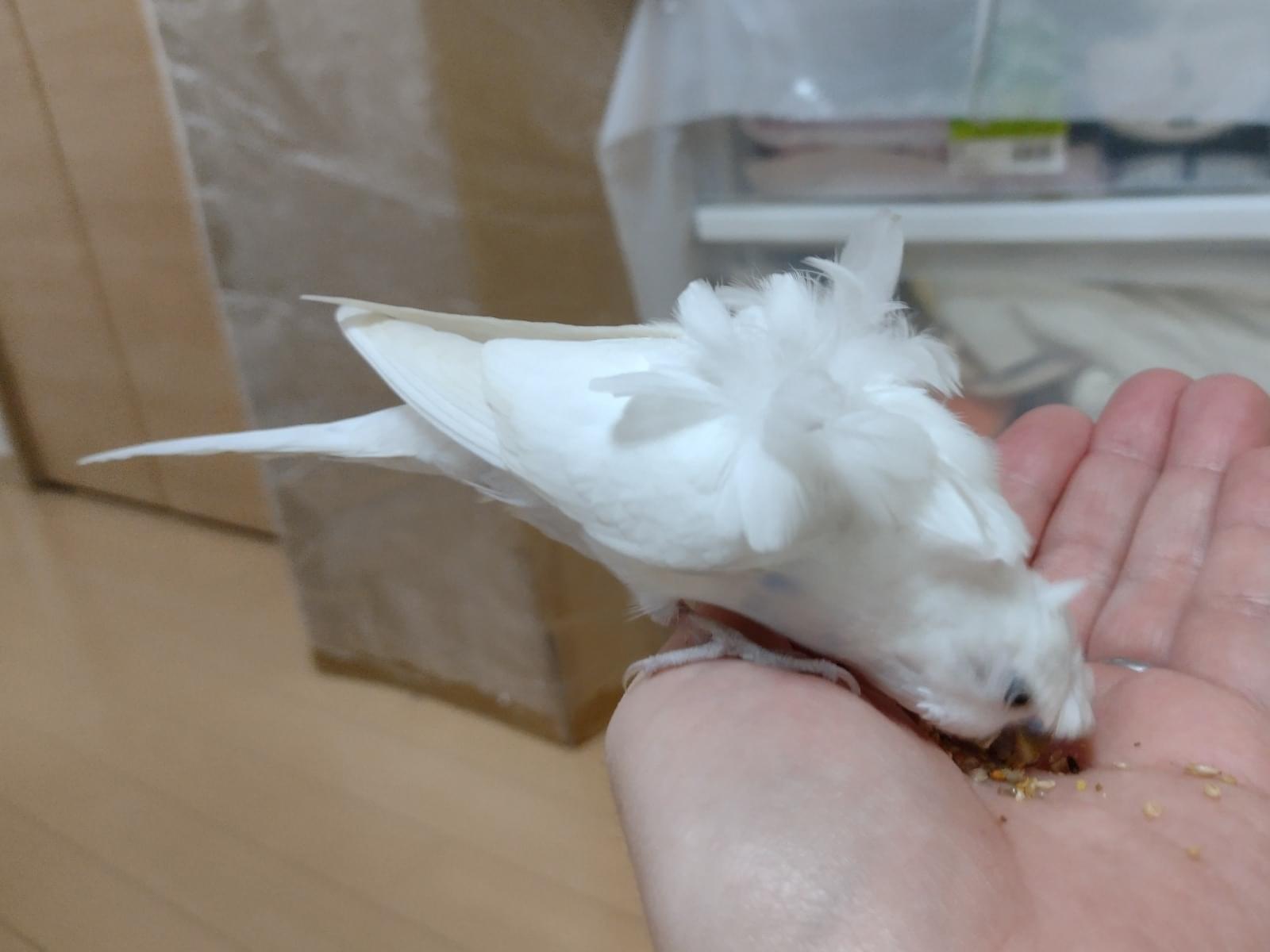白色のセキセイインコを保護してます