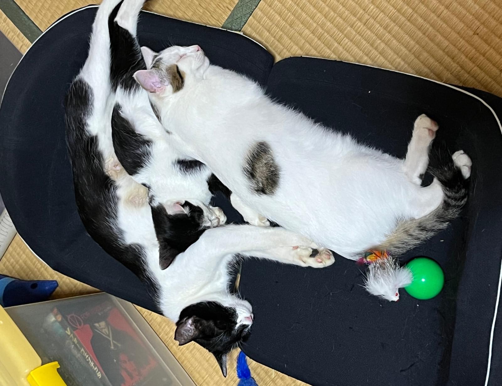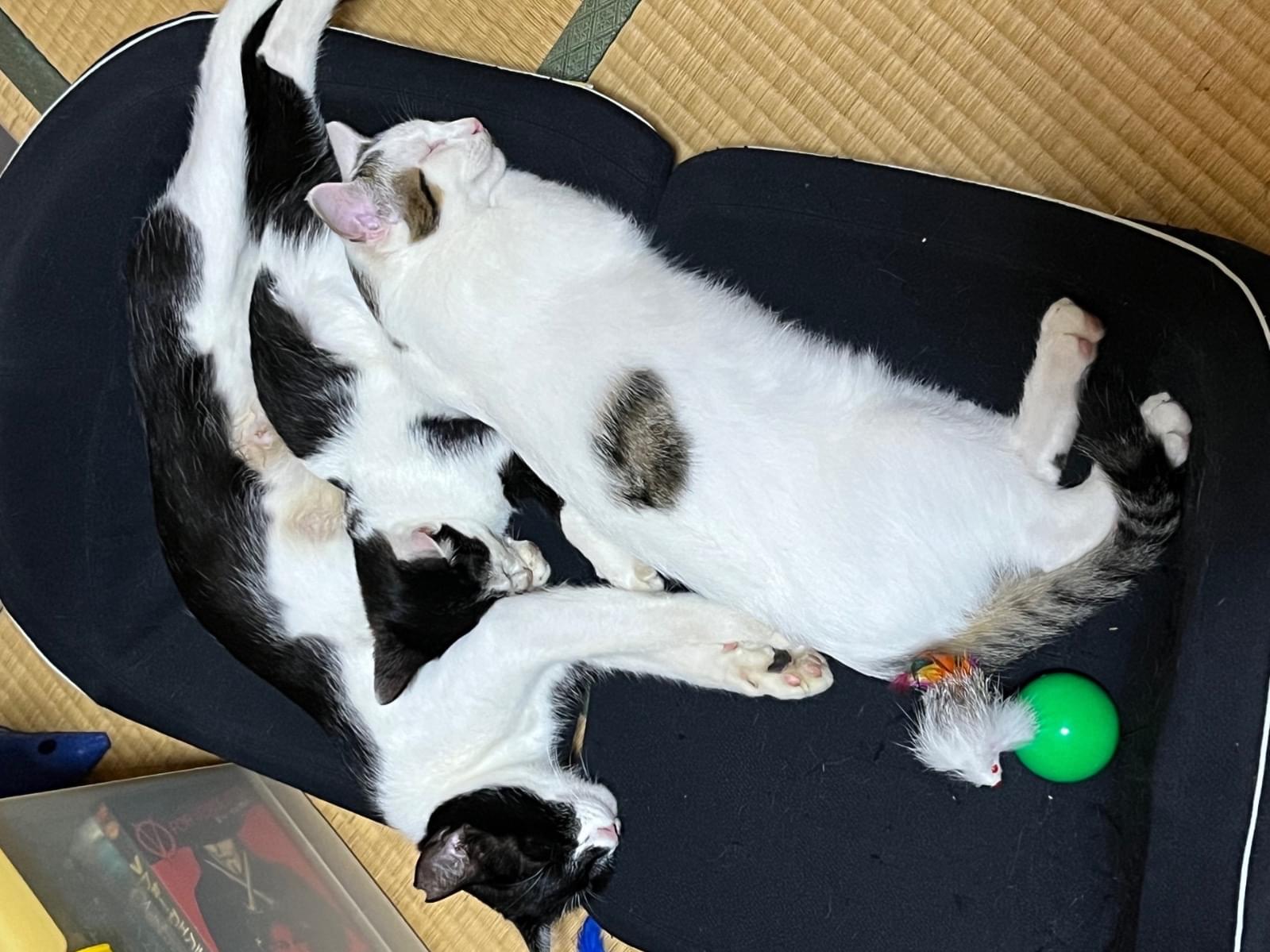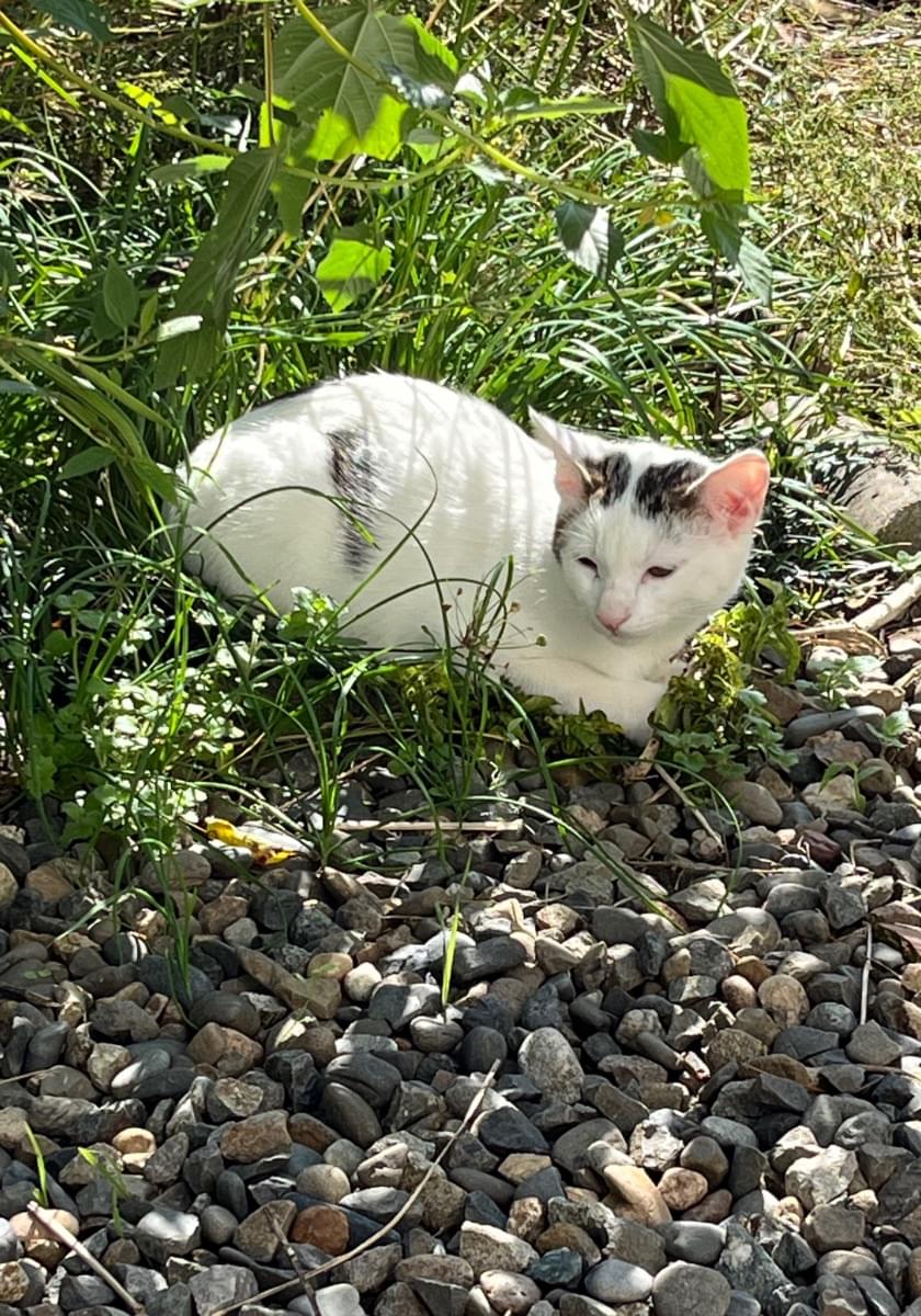 白地で顔の周りと背中と尻尾にキジトラ模様です。9ヶ月ですが、大きい子です。夜に母猫と外に出て帰ってきませんでした。母猫は帰ってきています。写真2枚目の方が今の大きさに近いです。