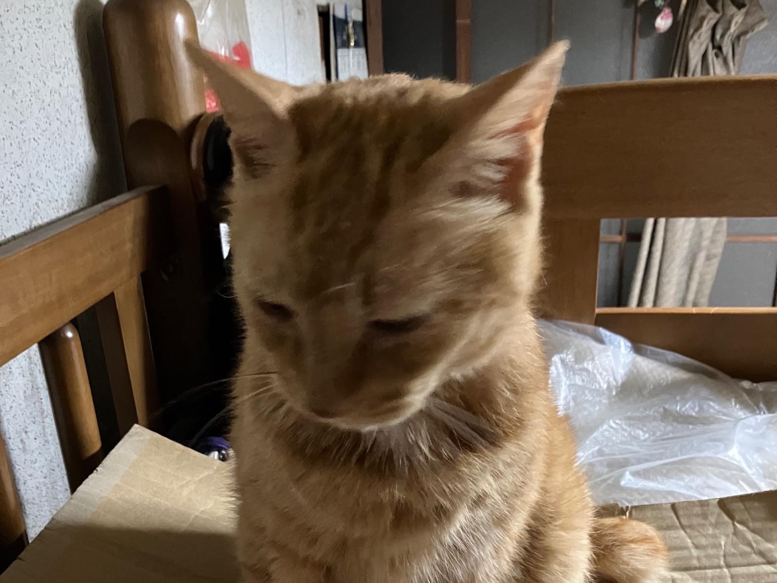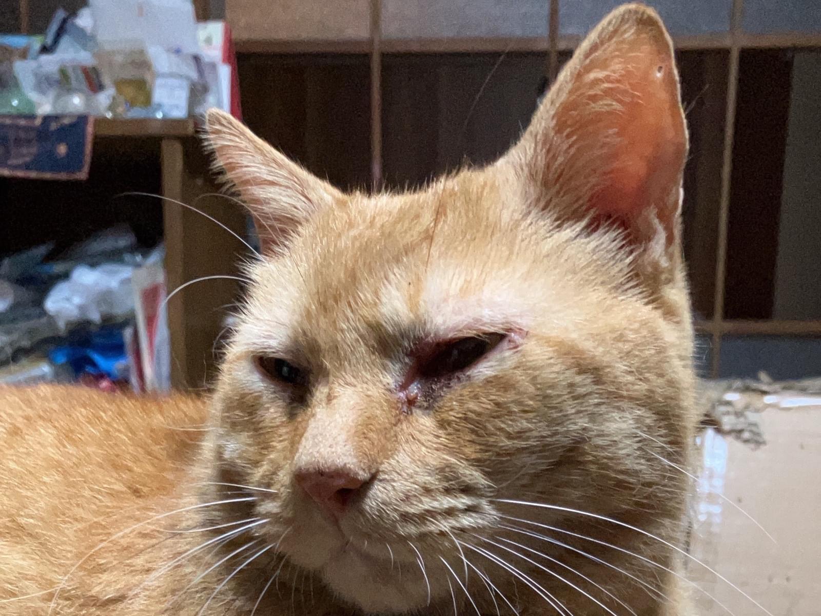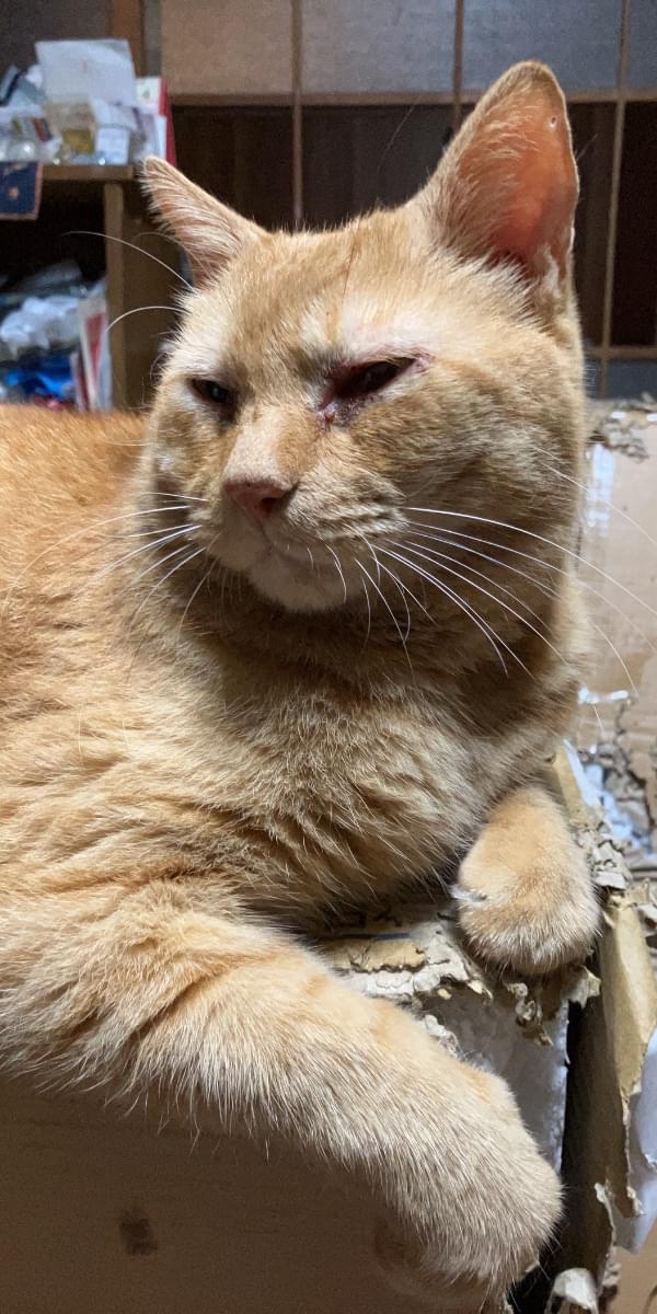 茶トラの男の子です。体の左側に3センチ位のしこりがあります。しっぽは中位の長さです。