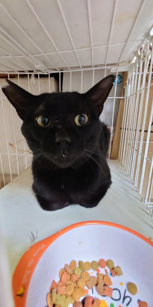 耳カットしている黒猫