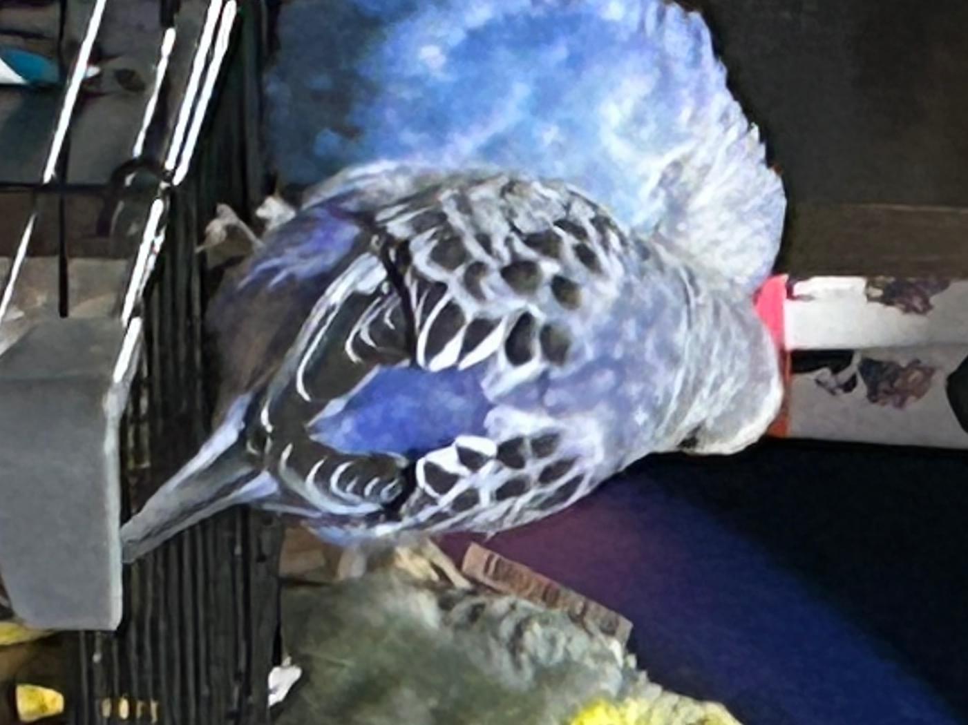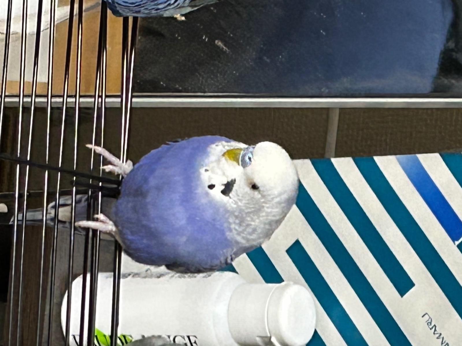 鼻が青く、ちょっと他のセキセイインコより頭が若干大きい、声は高めで羽は濃い青と黒の模様