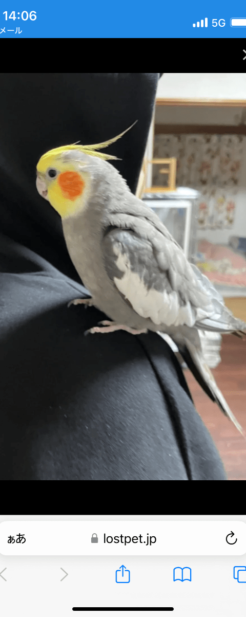 2/12 14:30頃にオカメインコを逃してしまいました。何か情報がありましたら、ご連絡お願い致します🙇♀️