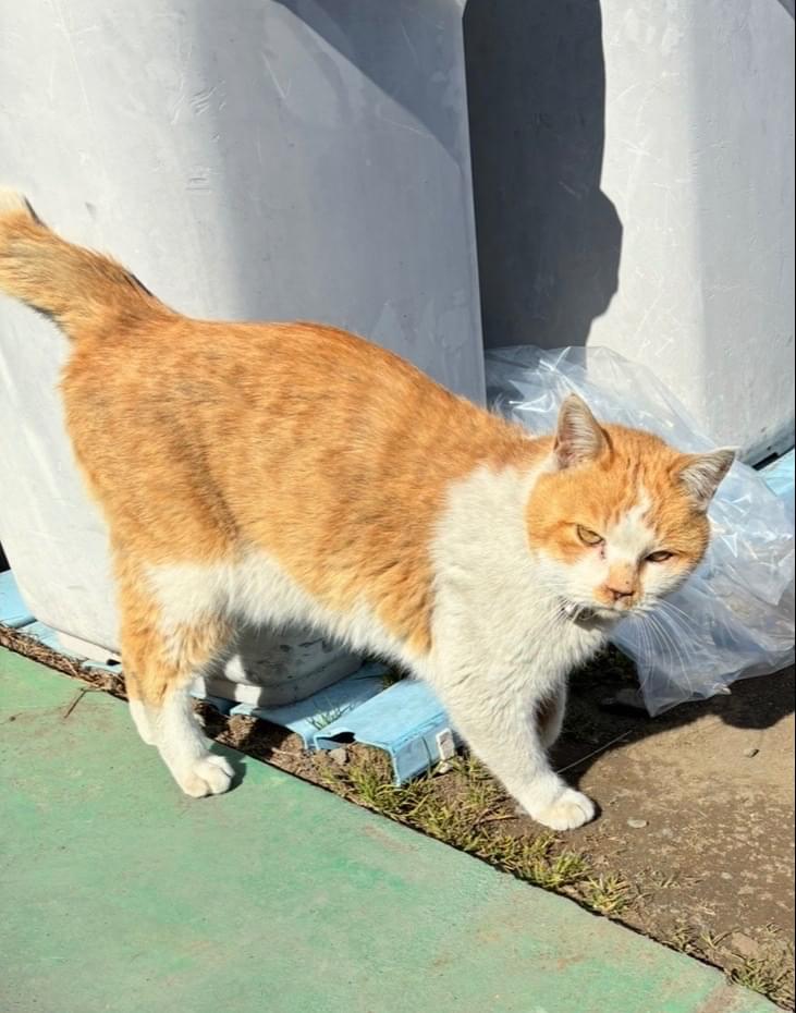 ひたちなか市足崎のファミリーマート近くで、人懐っこい茶白猫を保護しました。